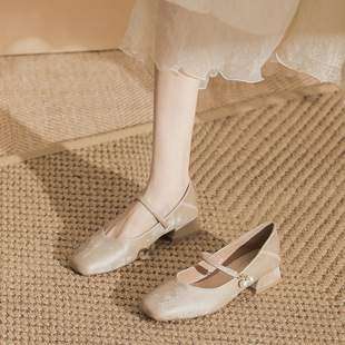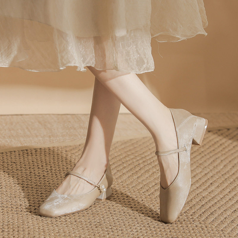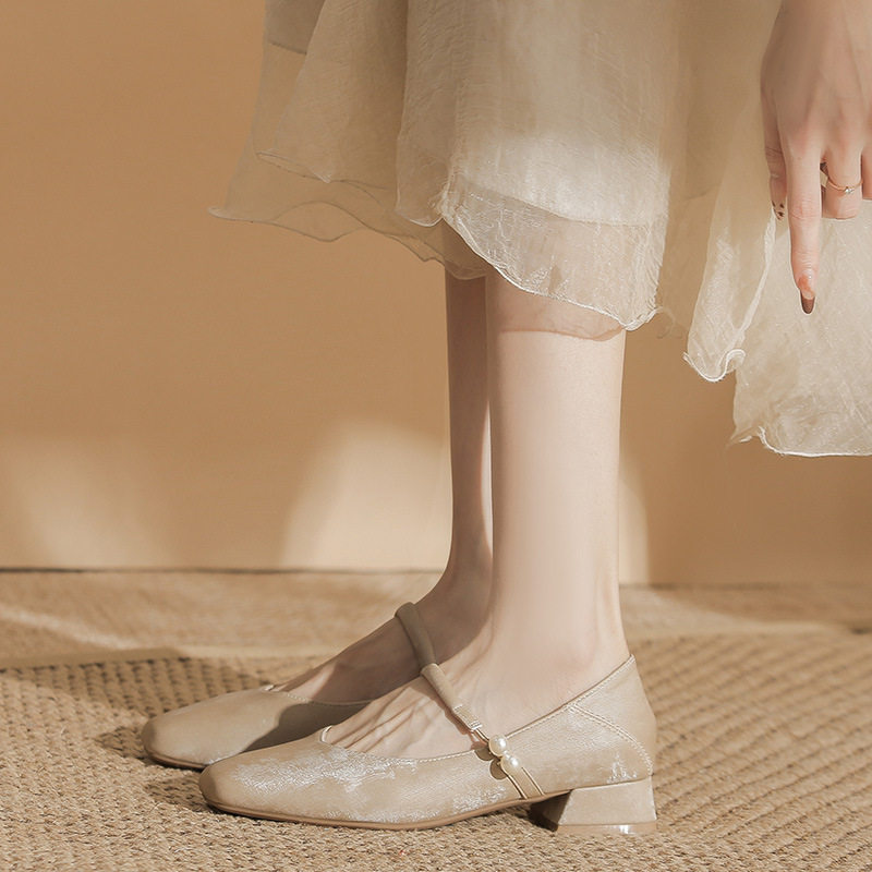 2025冬季 小皮鞋 新款 千金珍珠高跟鞋 绝美浅口单鞋 达芙妮玛丽珍女鞋