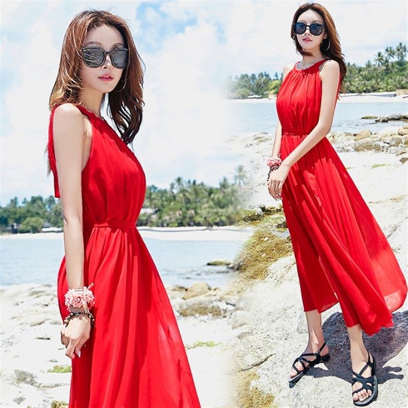 2021新夏季 波西米亚海边度假大裙摆吊带长裙子 沙滩雪纺连衣裙大码