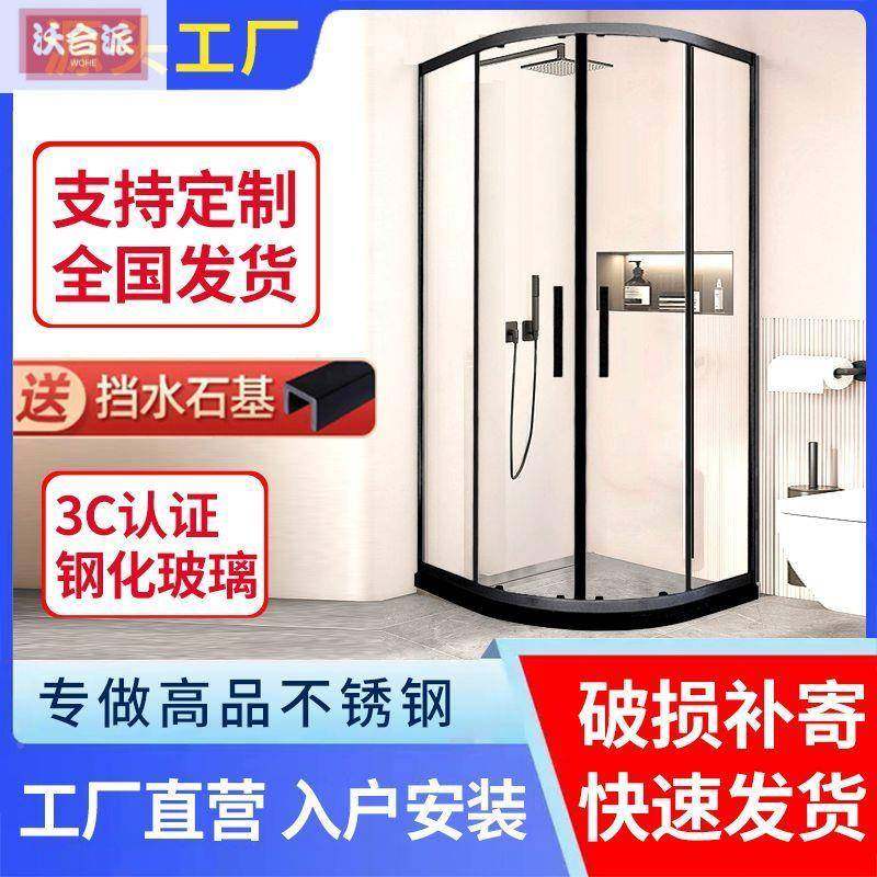 卫生框间钢化玻隔断移门璃扇形IFV洗澡间形极简新弧款 淋浴房干湿