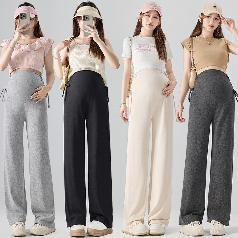 宽松大码 外穿简约托腹阔腿裤 休闲裤 夏装 夏 孕妇裤 怀孕九分裤 子夏季