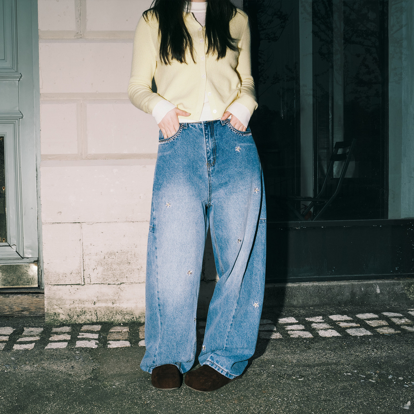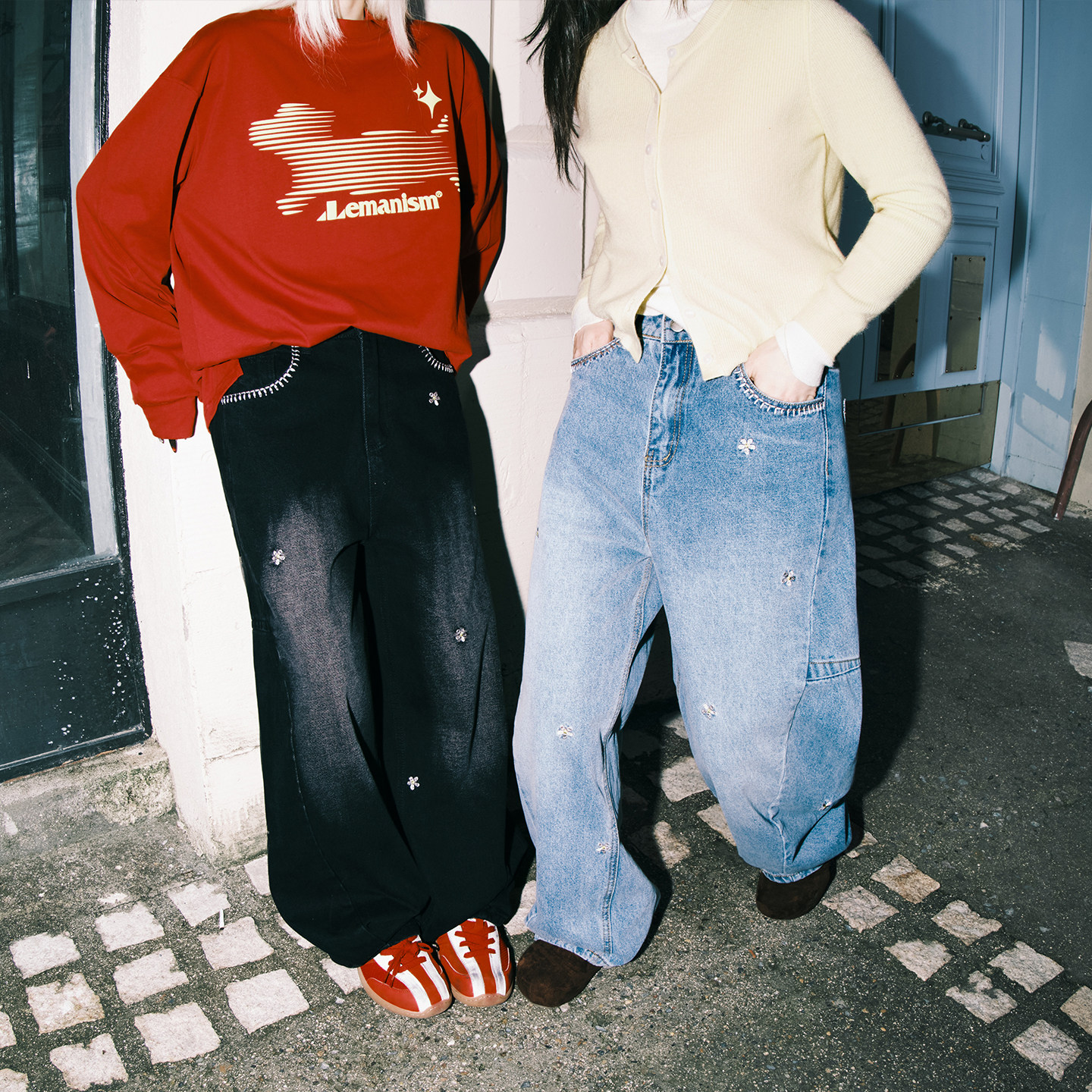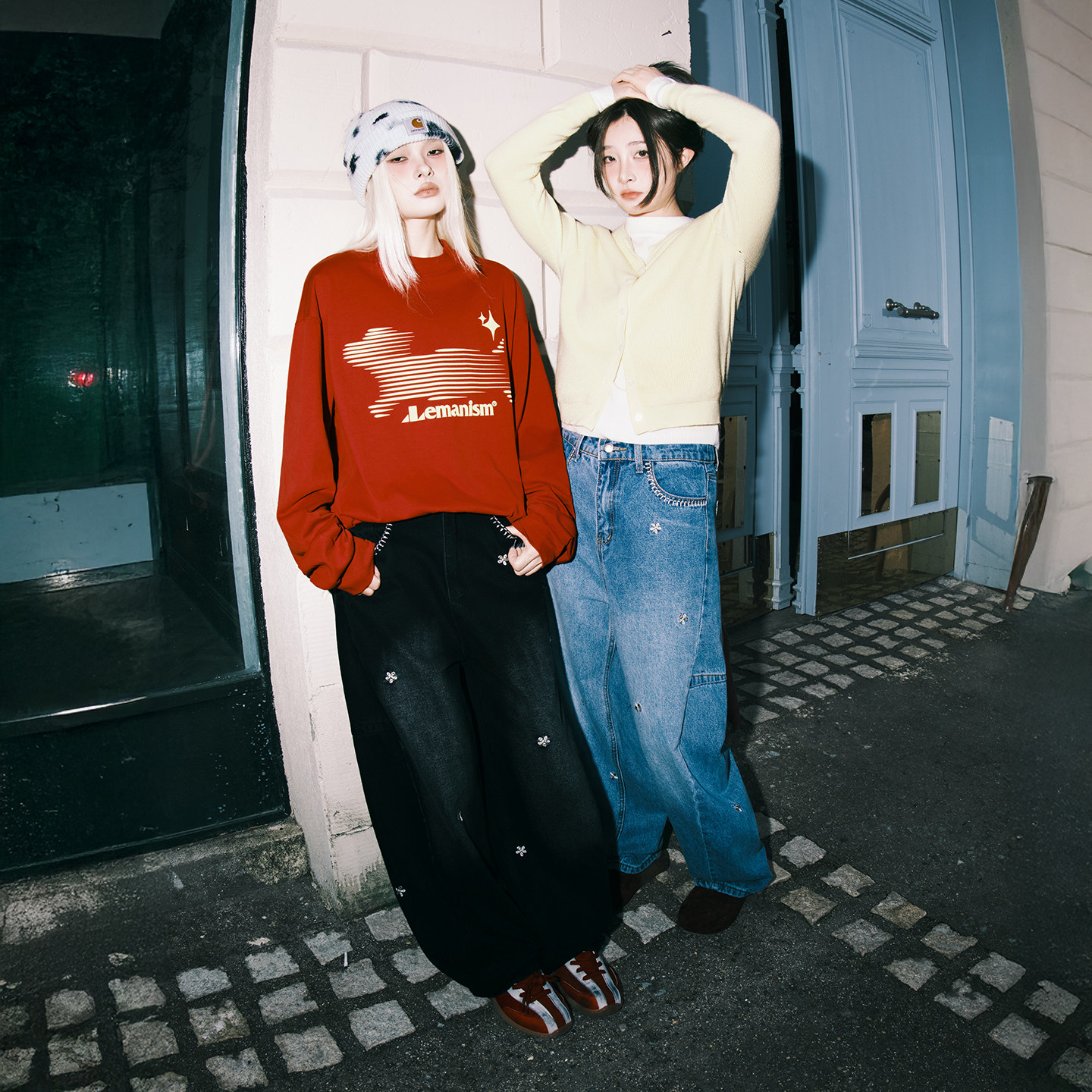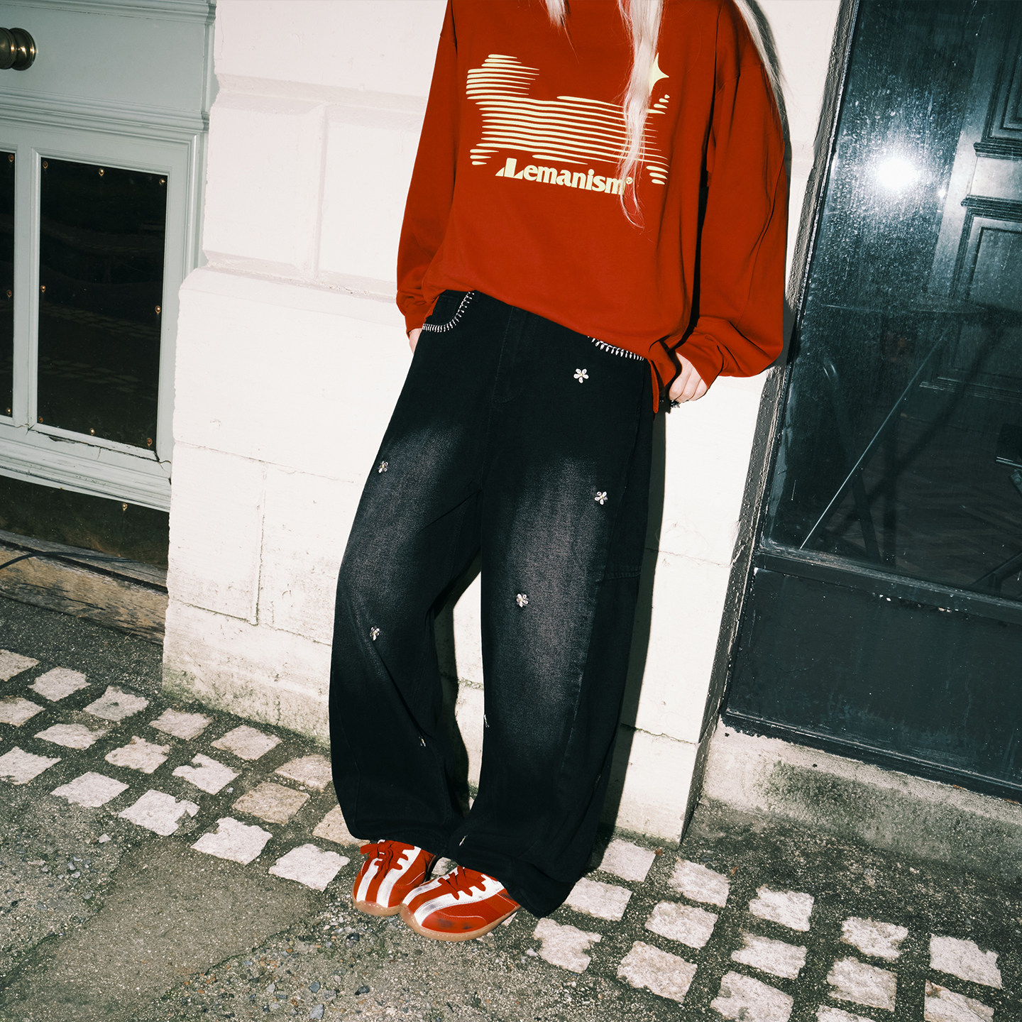 宽松休闲裤 lemanism美式 情侣款 男2026新款 女 潮流小花朵刺绣牛仔裤
