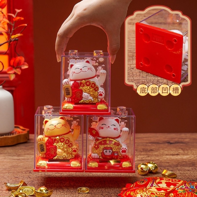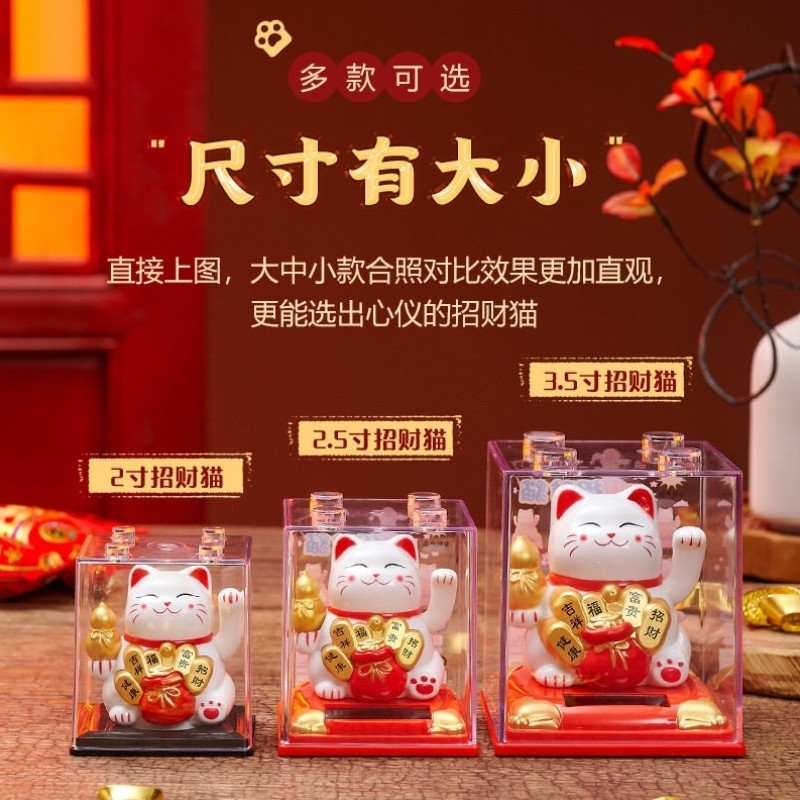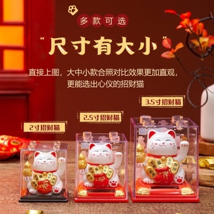 太阳能招财猫自动招手摇手车载摆件客厅办公店铺开业送礼装 饰品