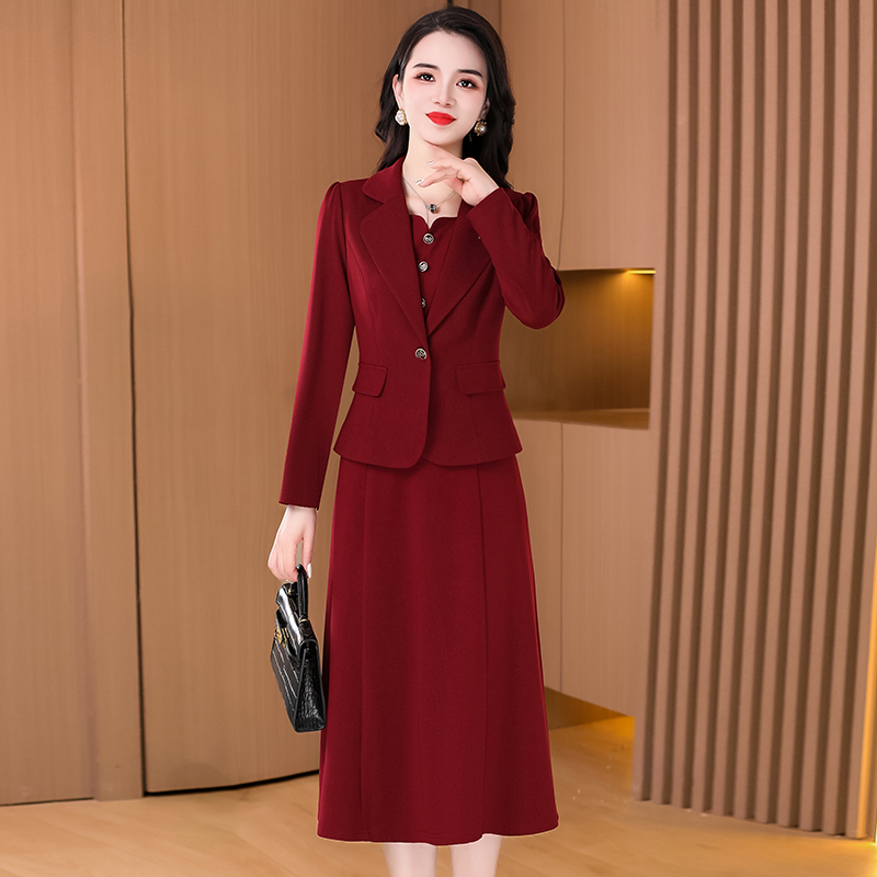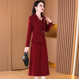 喜婆婆婚宴装 春秋结婚礼服妈妈高贵套裙 平时可穿红色连衣裙女新款