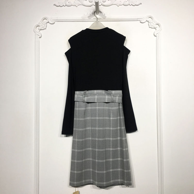 黑色长袖 针织拼接长裙 方领假两件挂脖连衣裙女高级感气质收腰长款