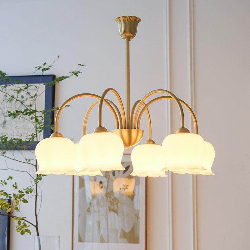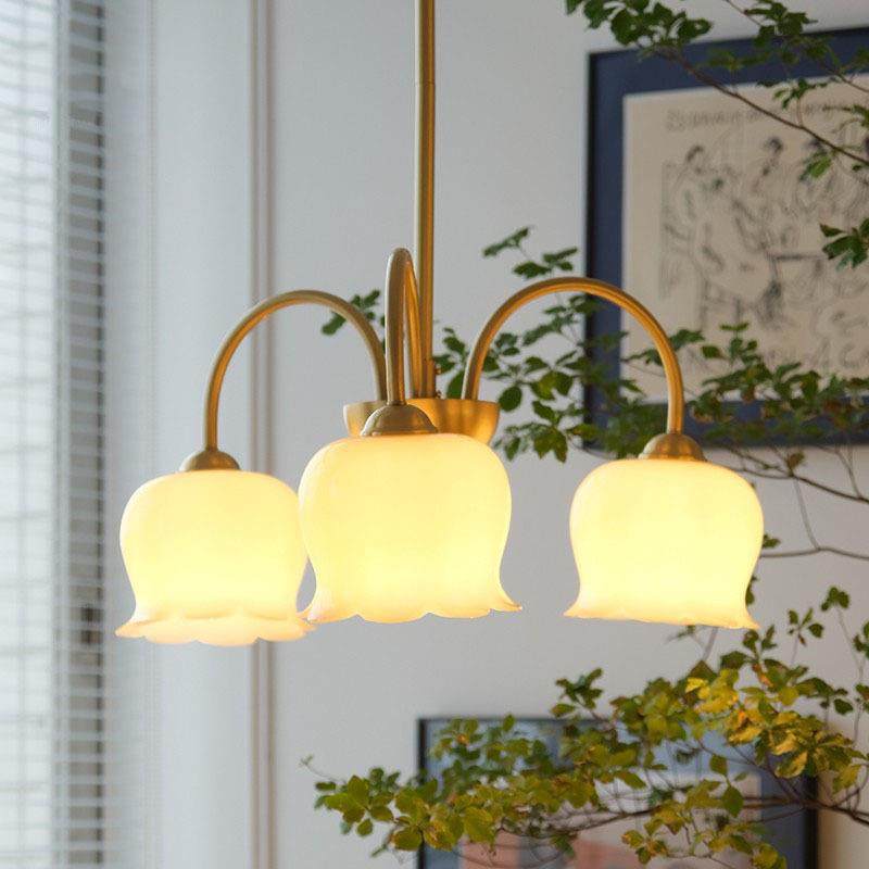 北欧现代法式 全铜简约奶油铃兰卧室吊灯衣帽间客厅餐厅吊灯 美式