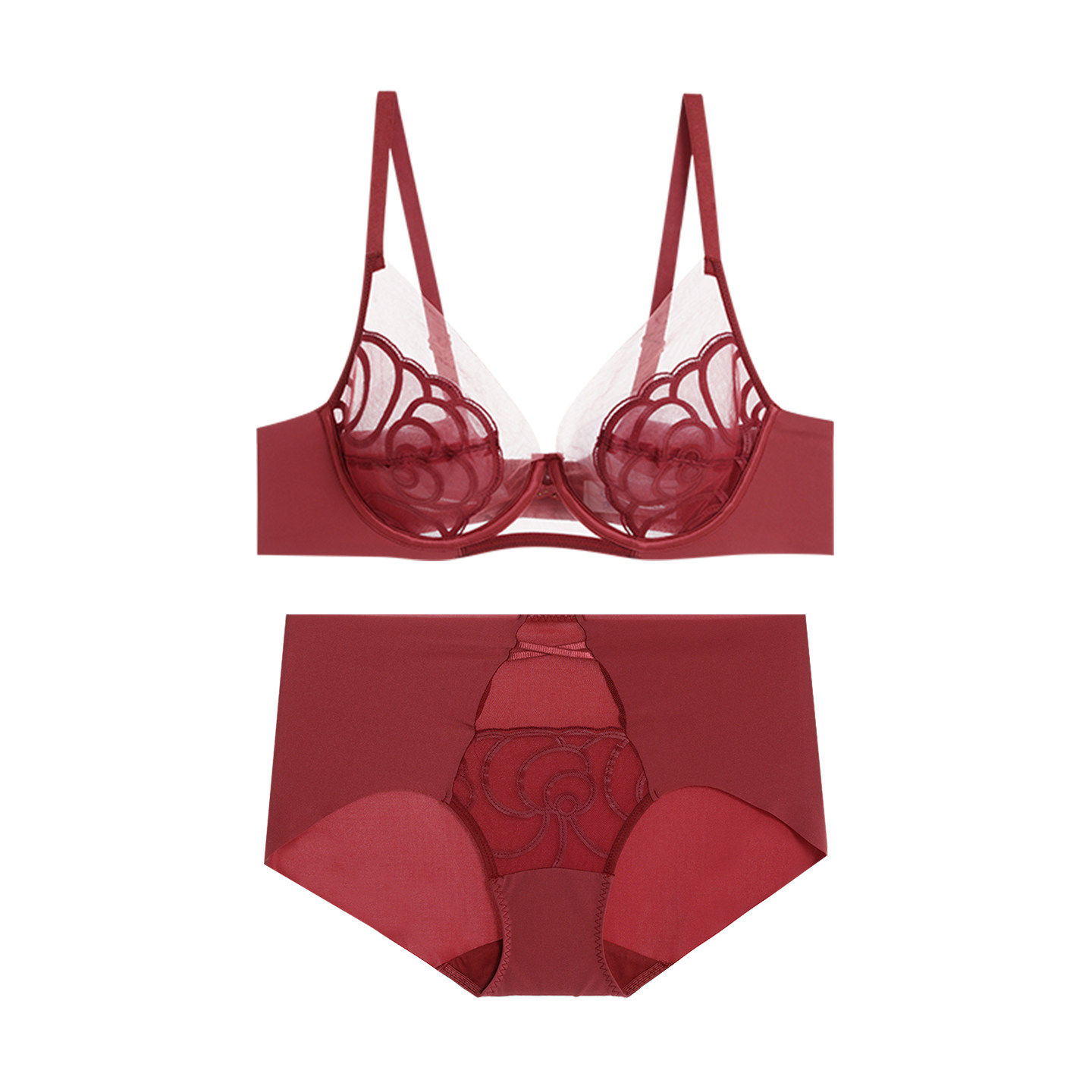 性感纯欲聚拢红色文胸罩套装 虞书欣同款 ubras洛可可蕾丝内衣法式
