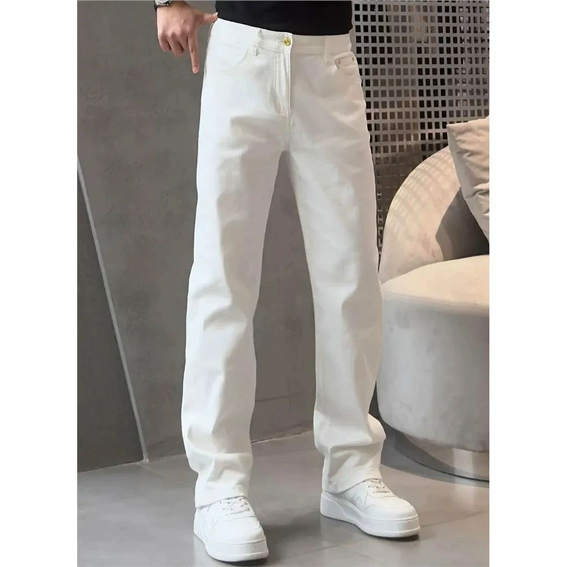 欧货百搭直筒裤 男帅气极简风休闲长裤 白色显瘦潮流牛仔裤 2025秋季