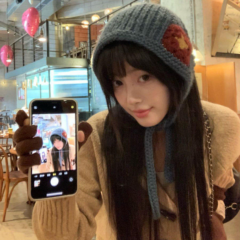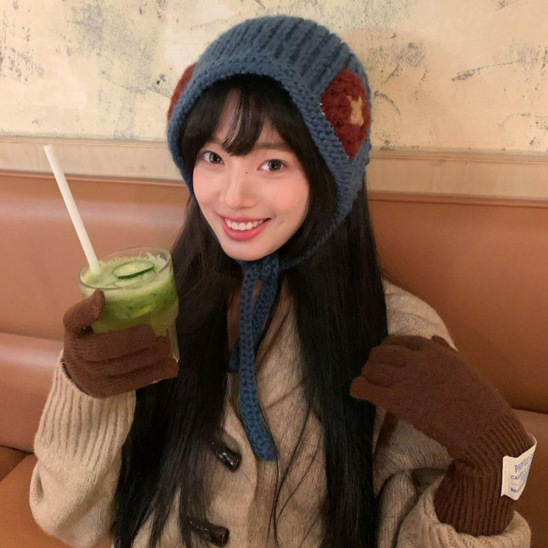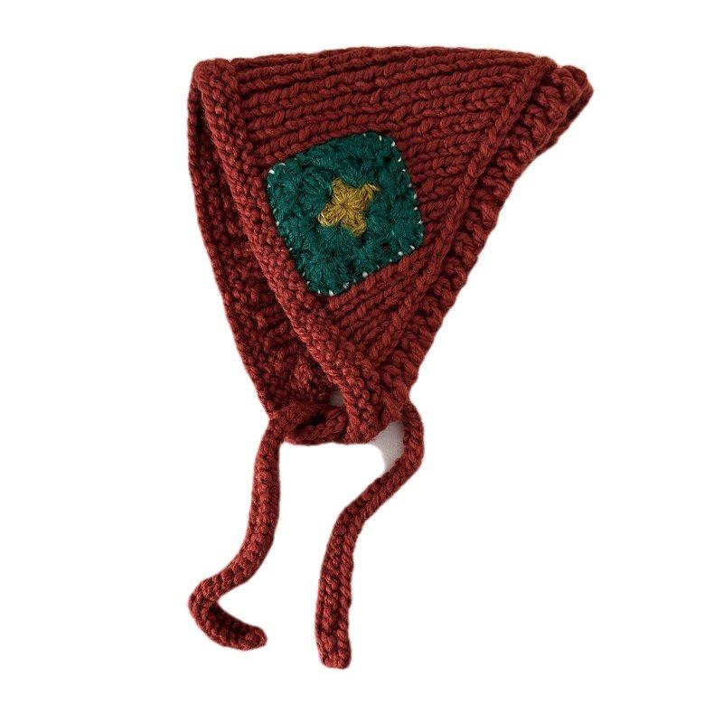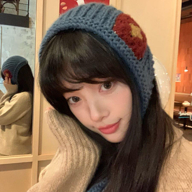 ins风复古蓝色三角头巾针织毛线发带包头巾秋冬季 氛围感发饰头饰