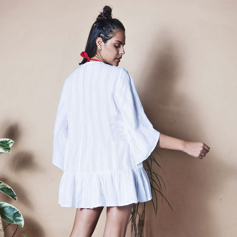 比基尼外搭女 纯棉提花宽松度假防晒沙滩开衫 泳衣外套罩衫 2020新款