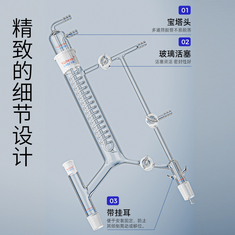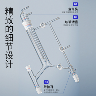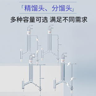 置具活芯式 40实验室玻璃仪器可定制5225 分馏头14 5223蒸馏头 5221精馏头柱蛇形直形型精馏塔装