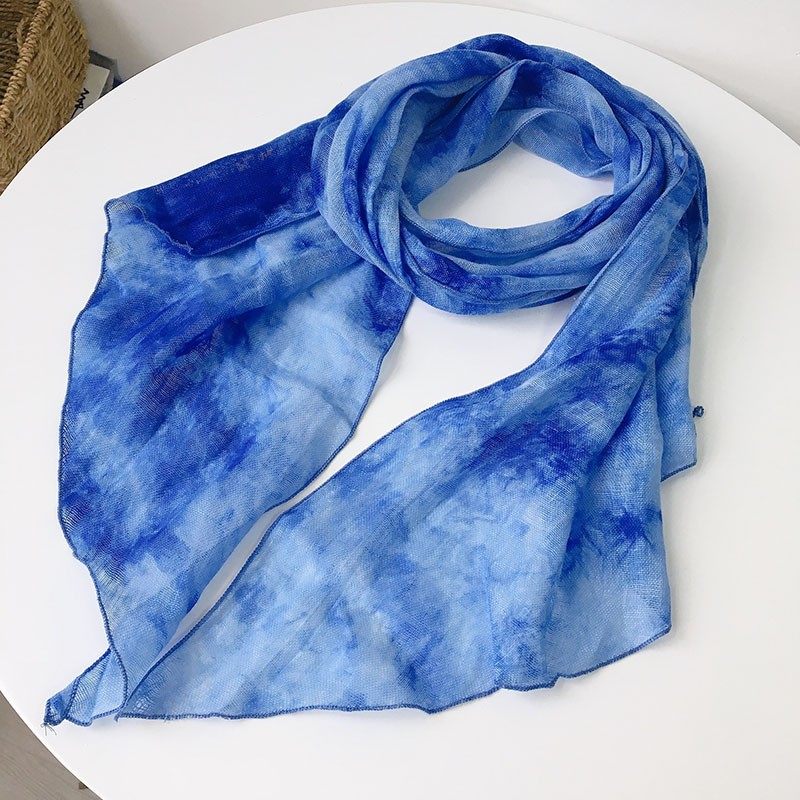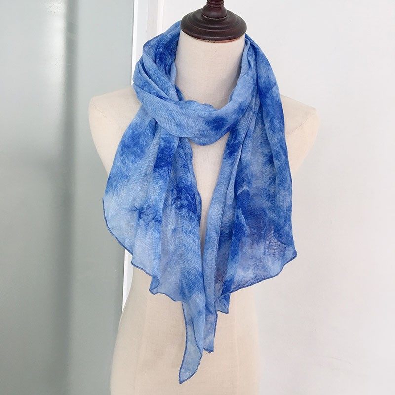 一澈扎染蓝染春夏文艺亚麻扎染小丝巾薄款 透气细窄围巾特色小围巾