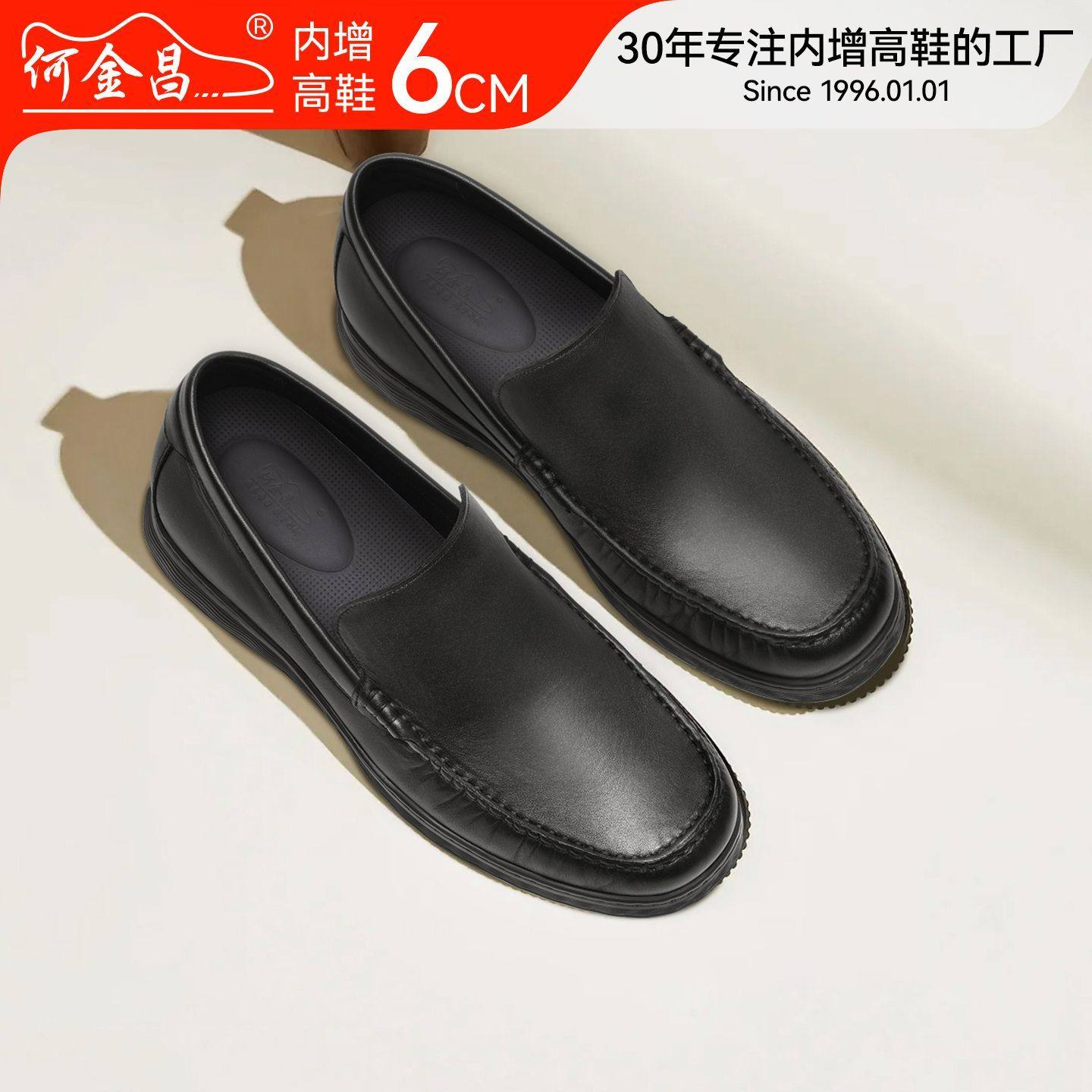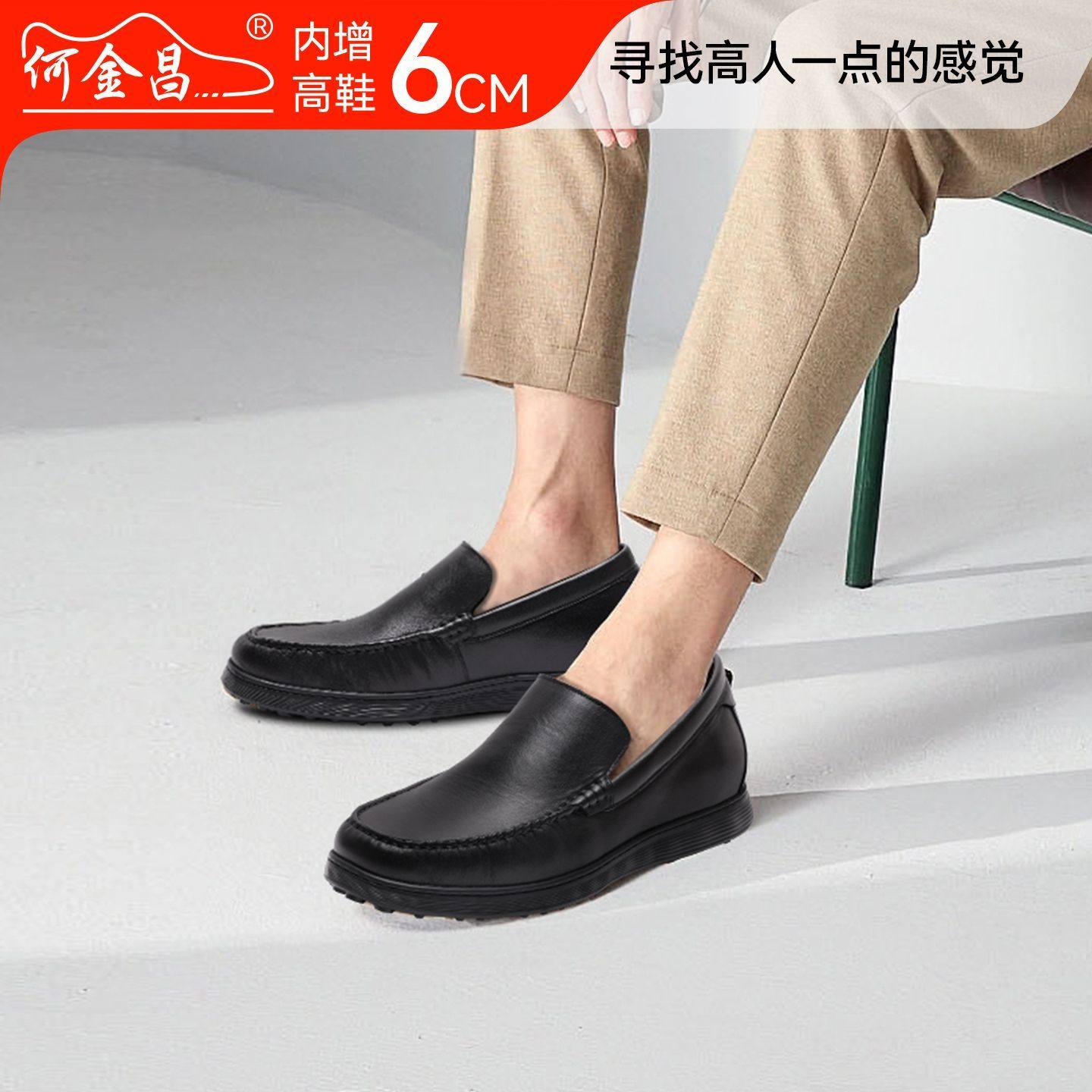 男式 德比鞋 商务休闲鞋 软皮乐福鞋 6CM 户外套脚皮鞋 何金昌内增高鞋