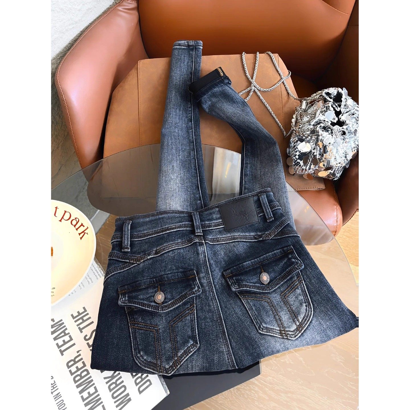 小脚牛仔裤 铅笔靴裤 女2025年冬季 修身 潮 新款 高腰显瘦加绒加厚个性