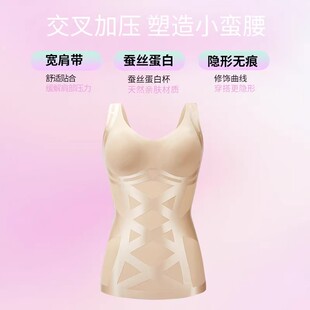 黑绷带交叉加压塑腰防驼背蚕丝背心女免穿文胸修身 收腹塑身背心