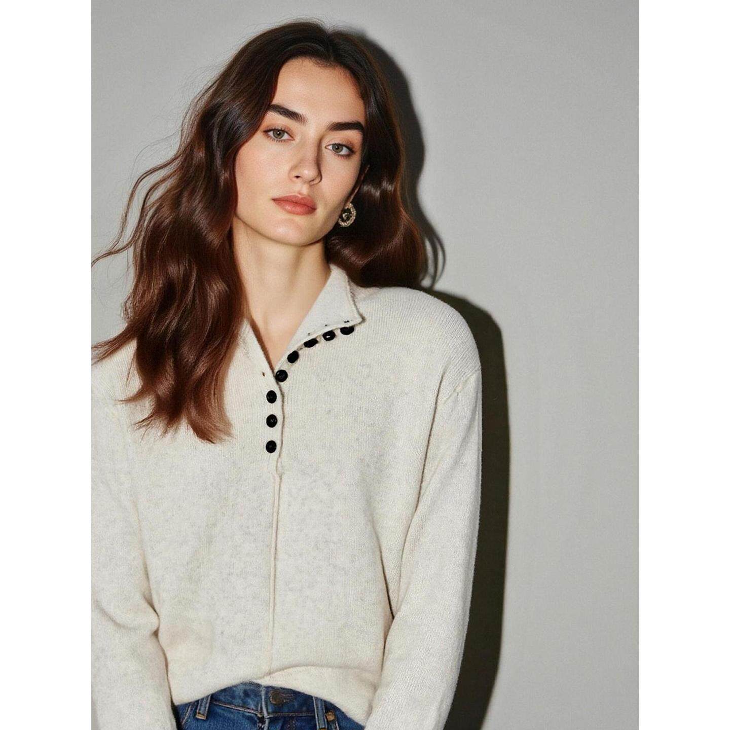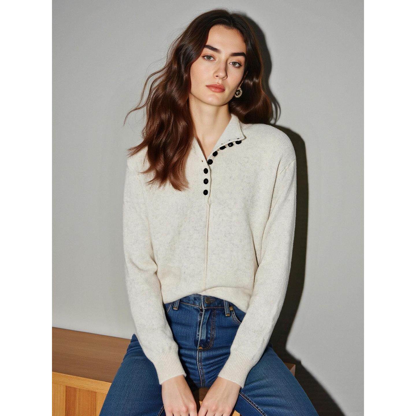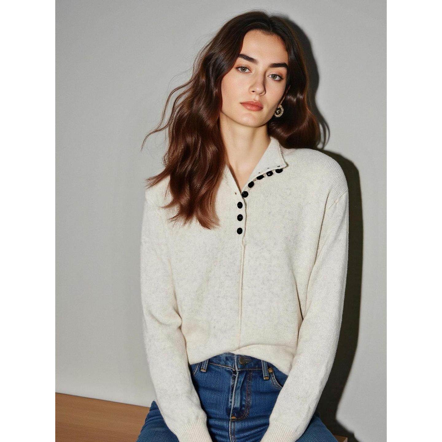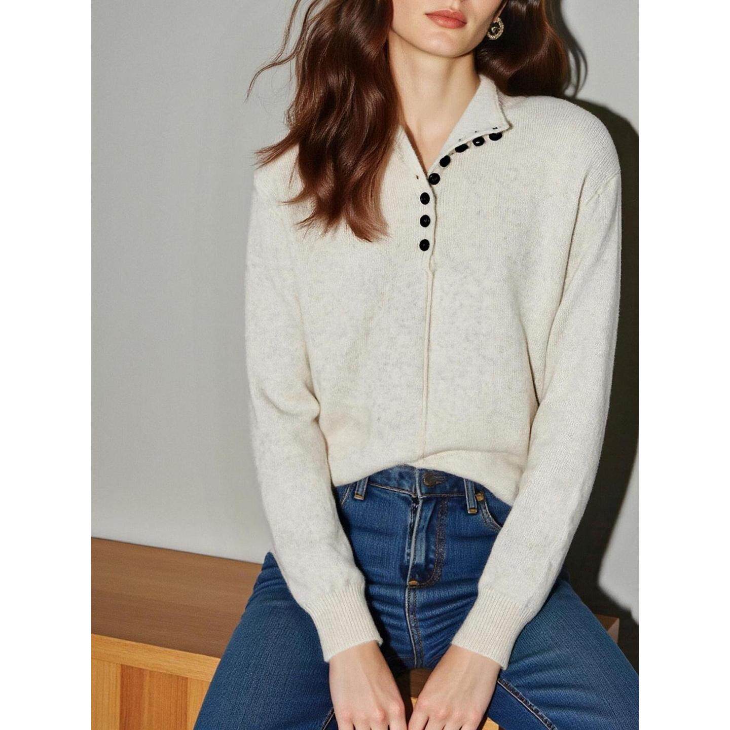 House 修身 百家好米白色半开领针织衫 新款 软糯毛衣 2026春季 Basic