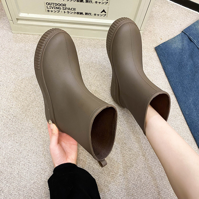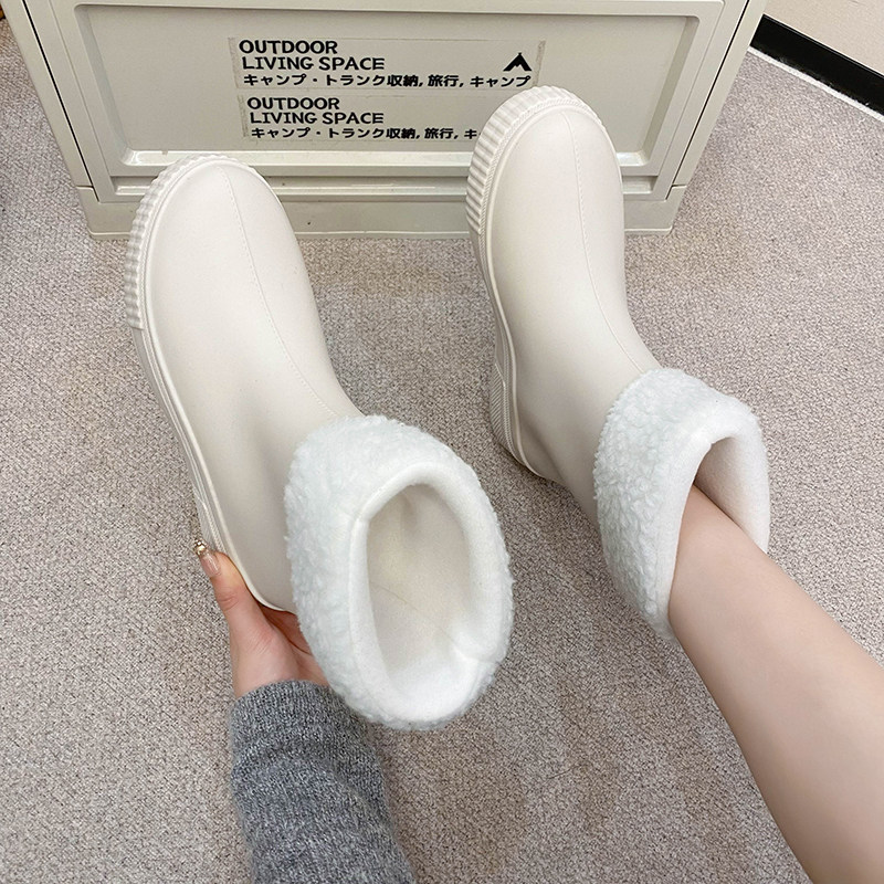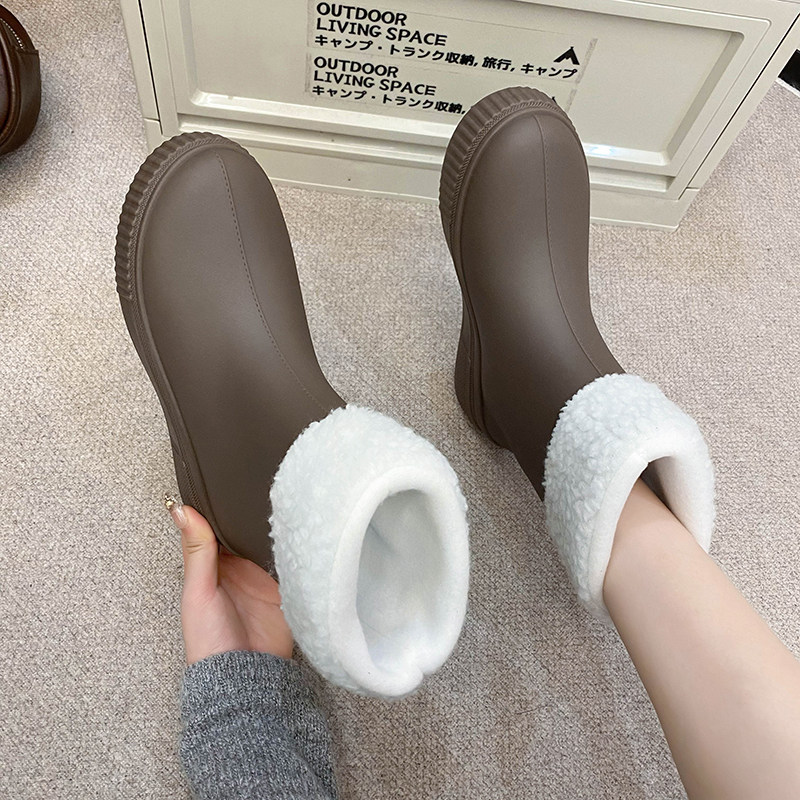 成人增高时尚 中筒女简约防滑防水加绒厚底保暖胶鞋 雨靴女 雨鞋 大码