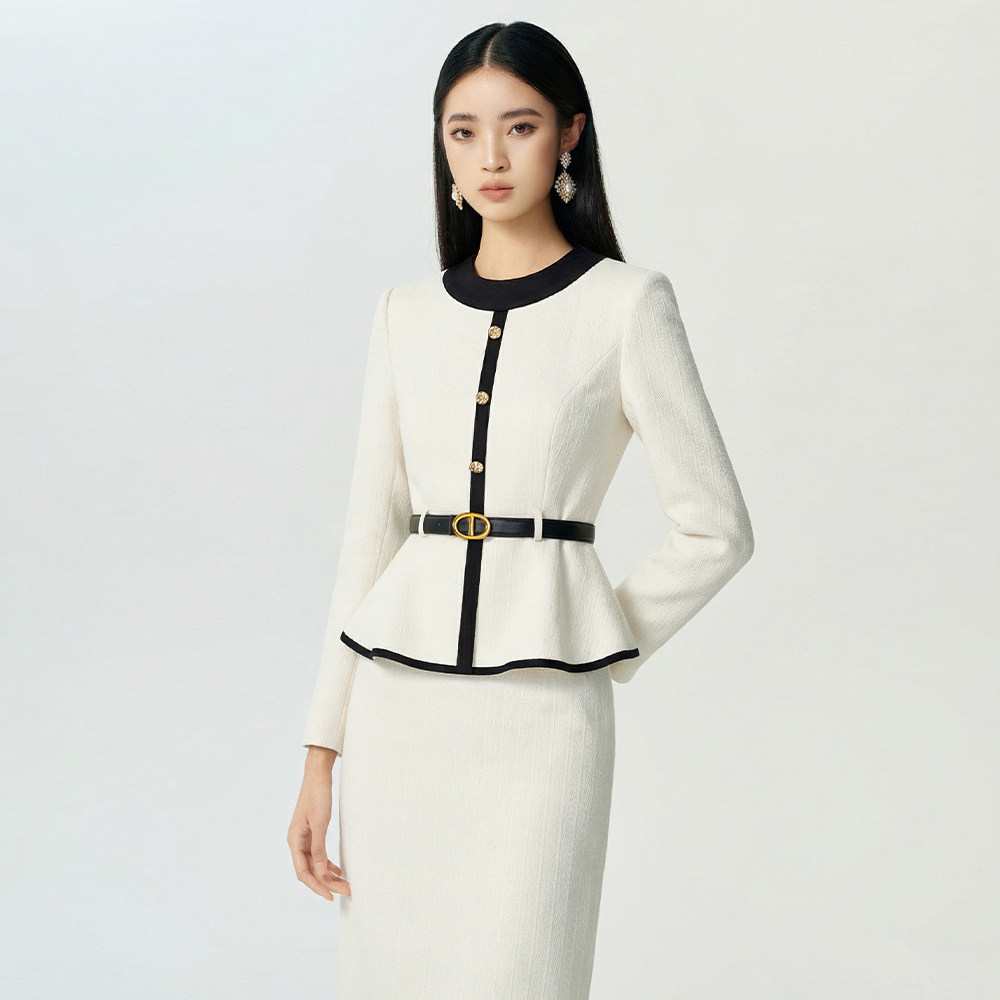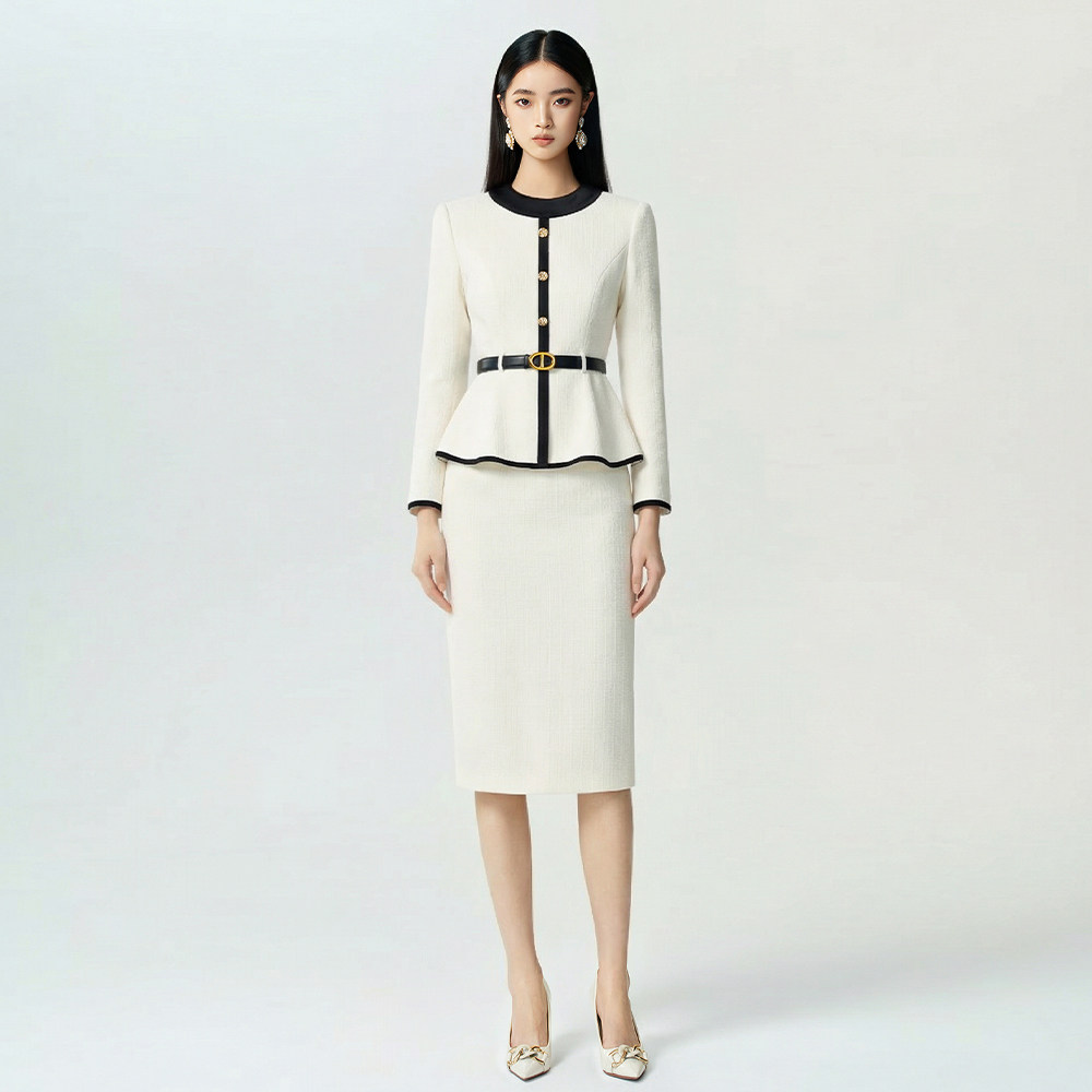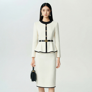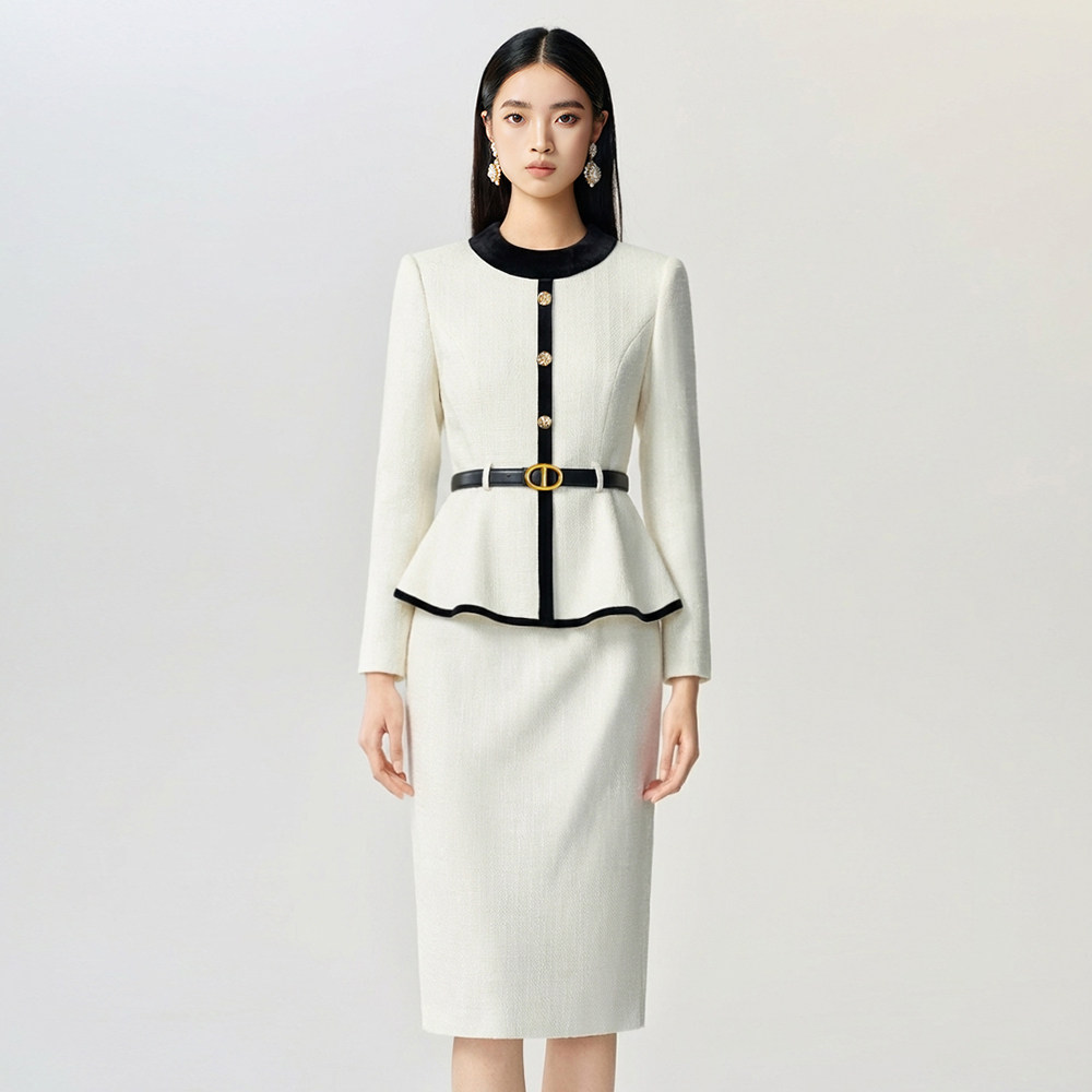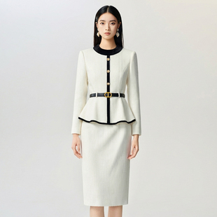 女美容院工作服秋冬 灯芯绒米白色端庄职业套装 suitqin西装 秦女装