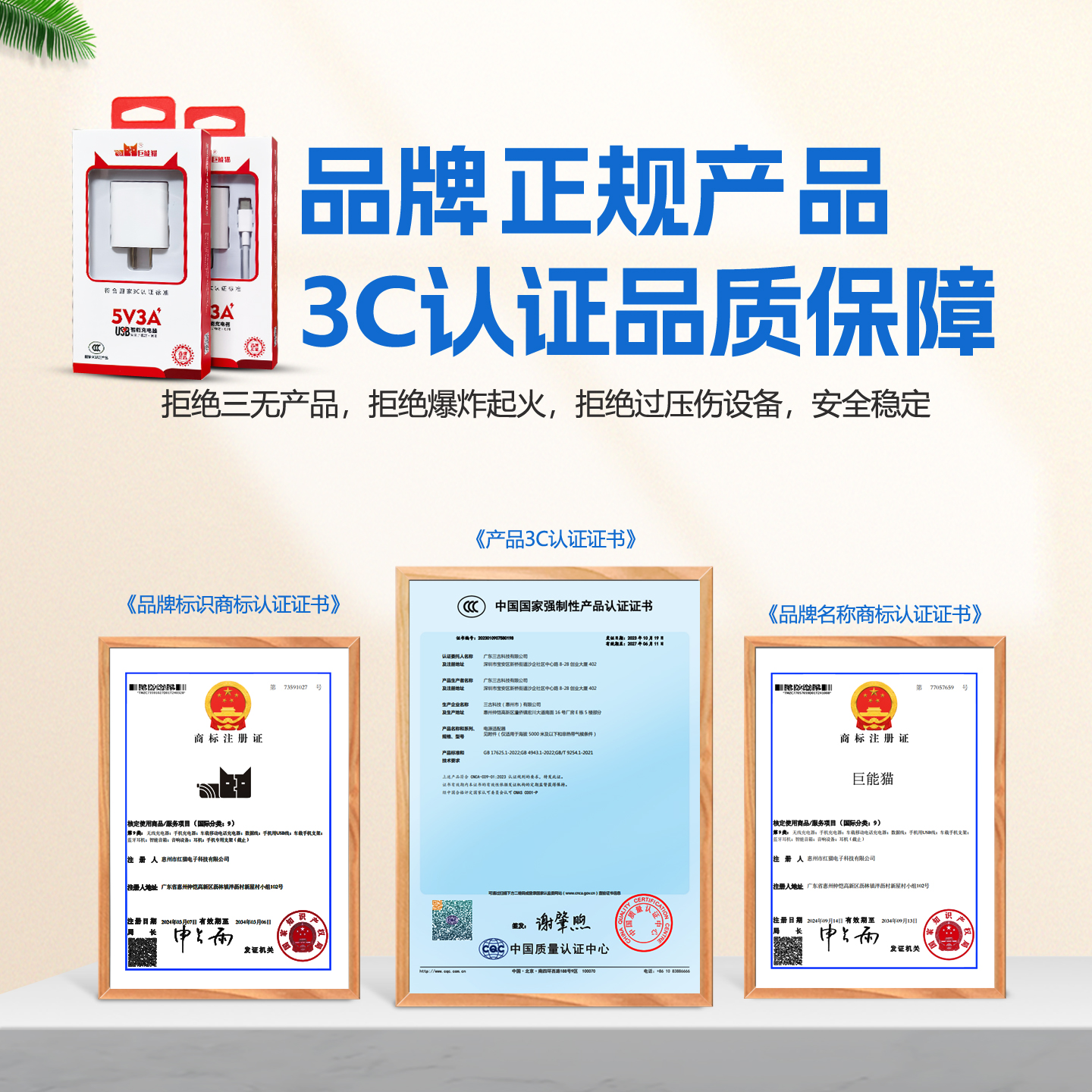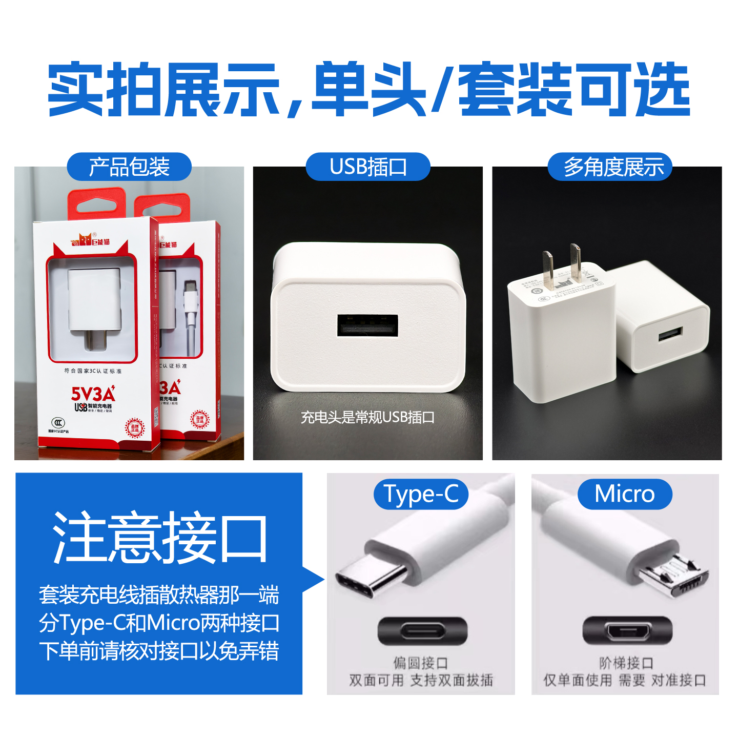适用于吉他美容仪 3C认证巨能猫正品 5V3A充电头散热器专用15W充电器5伏3安USB电源适配器3000mA单头Type C套装