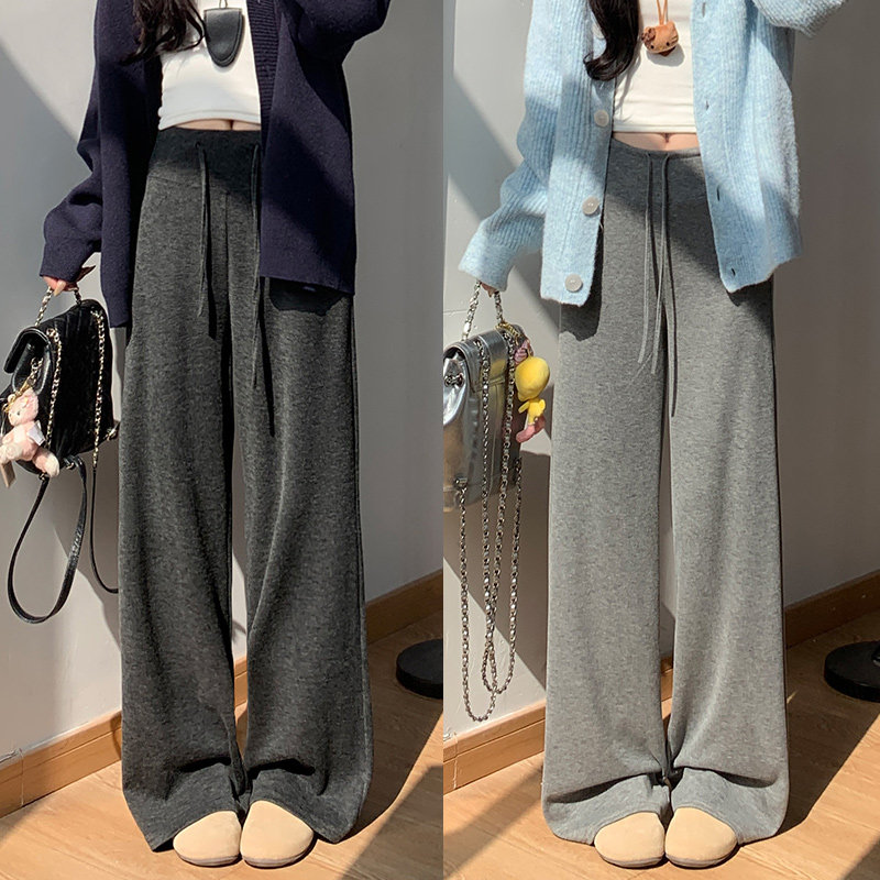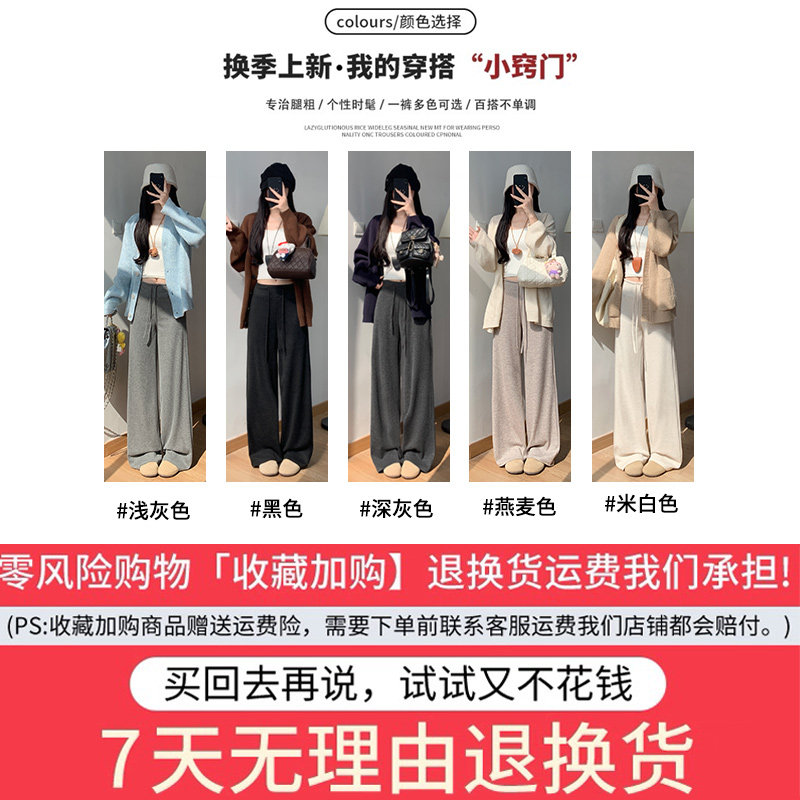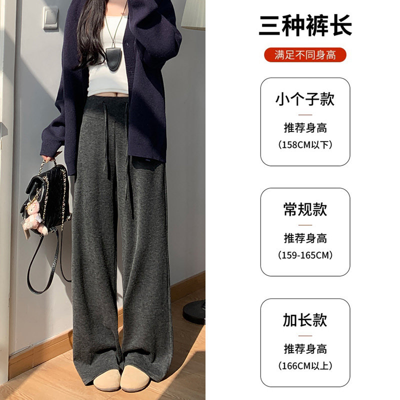 高腰垂感加绒显瘦小个子休闲阔腿裤 2025新款 女秋冬季 深灰色糯米裤
