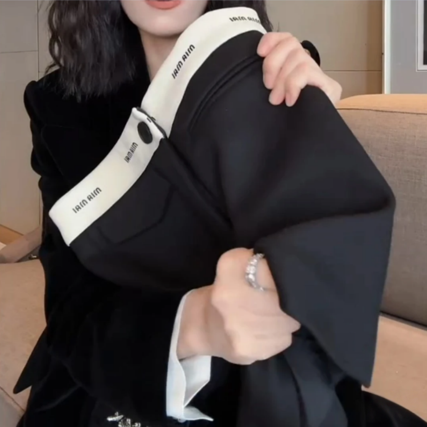 胖mm弹力显瘦梨型身材阔腿马蹄裤 加绒大码 子 女冬季 黑色微喇牛仔裤