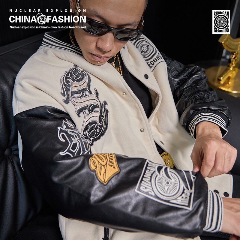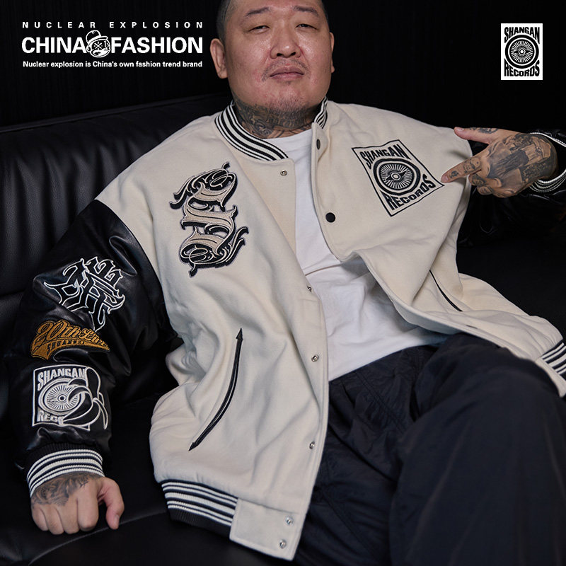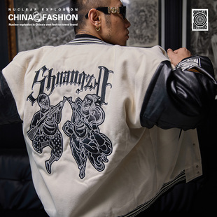 NE核爆炸×爽子上岸联名棒球棉服潮牌大码 宽松外套重磅刺绣夹克