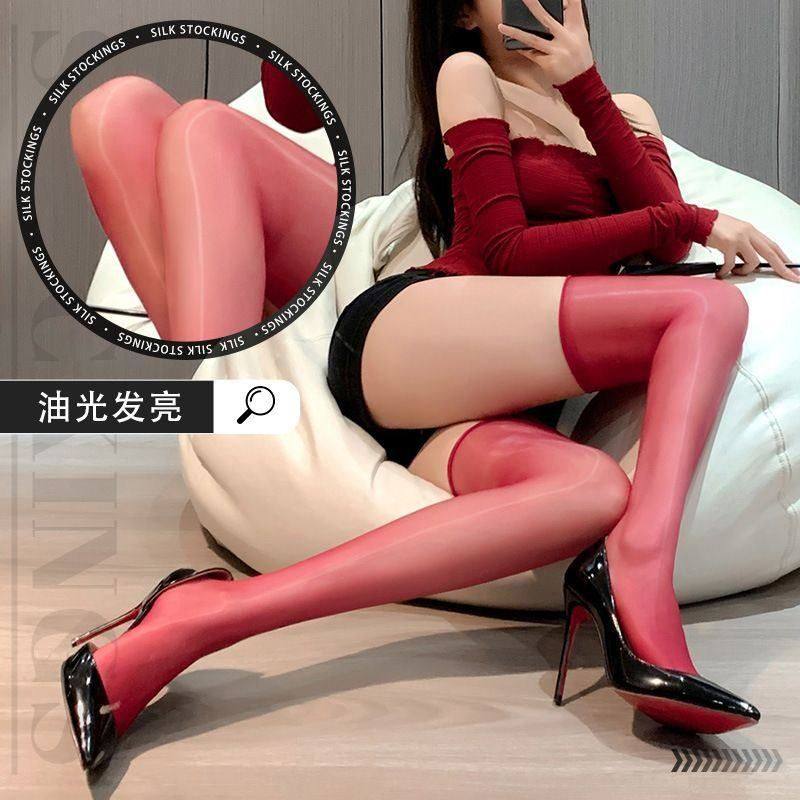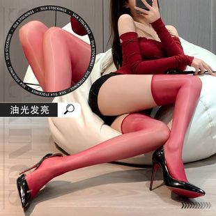 丝显瘦袜情调女亮超薄美腿袜丝袜黑丝大腿无边油光过膝长筒袜油亮