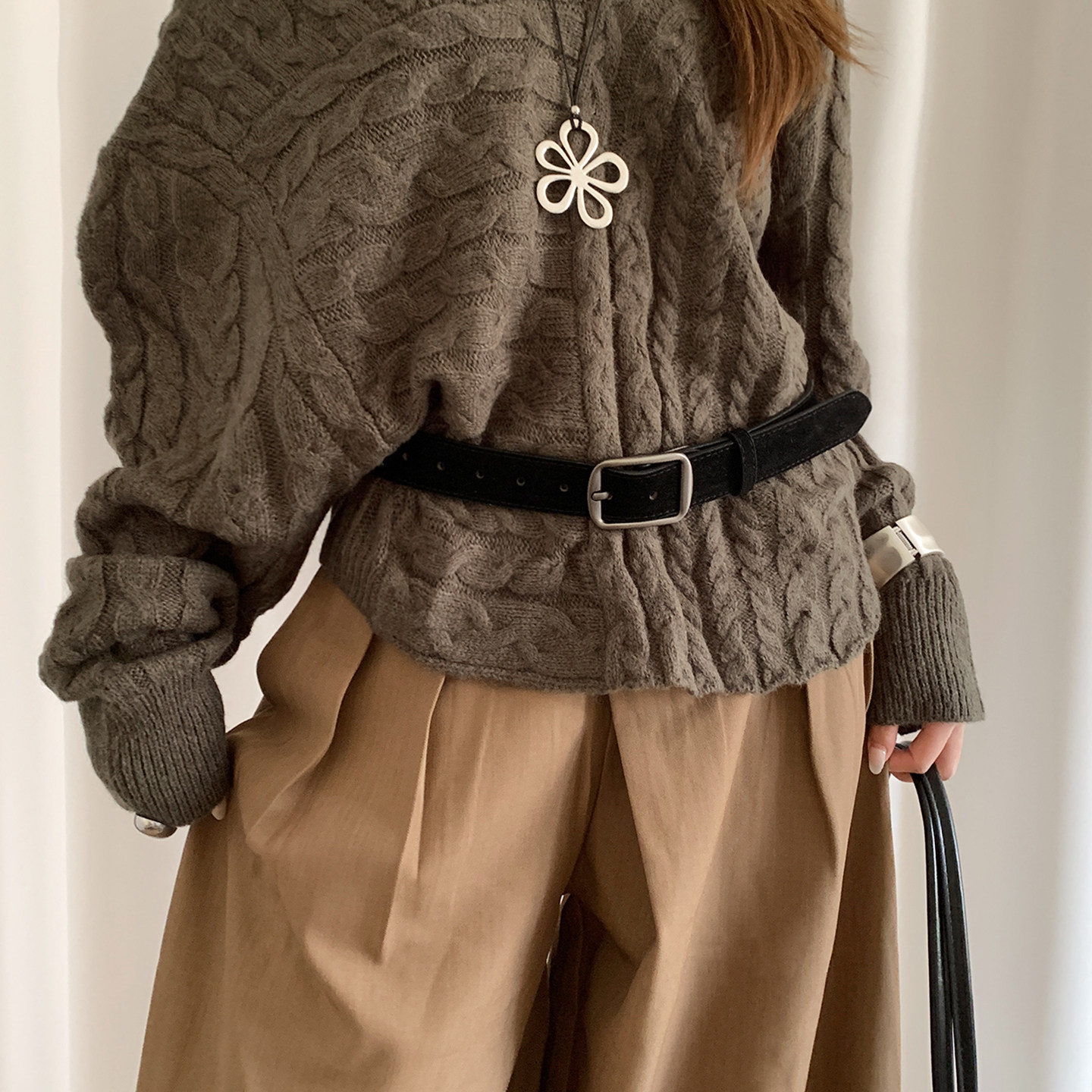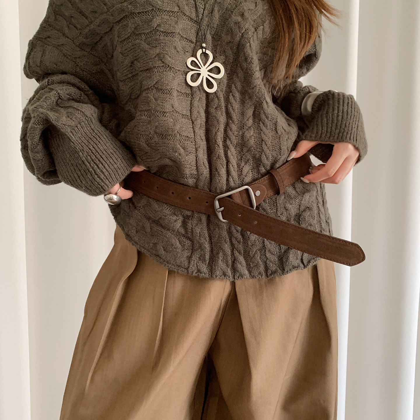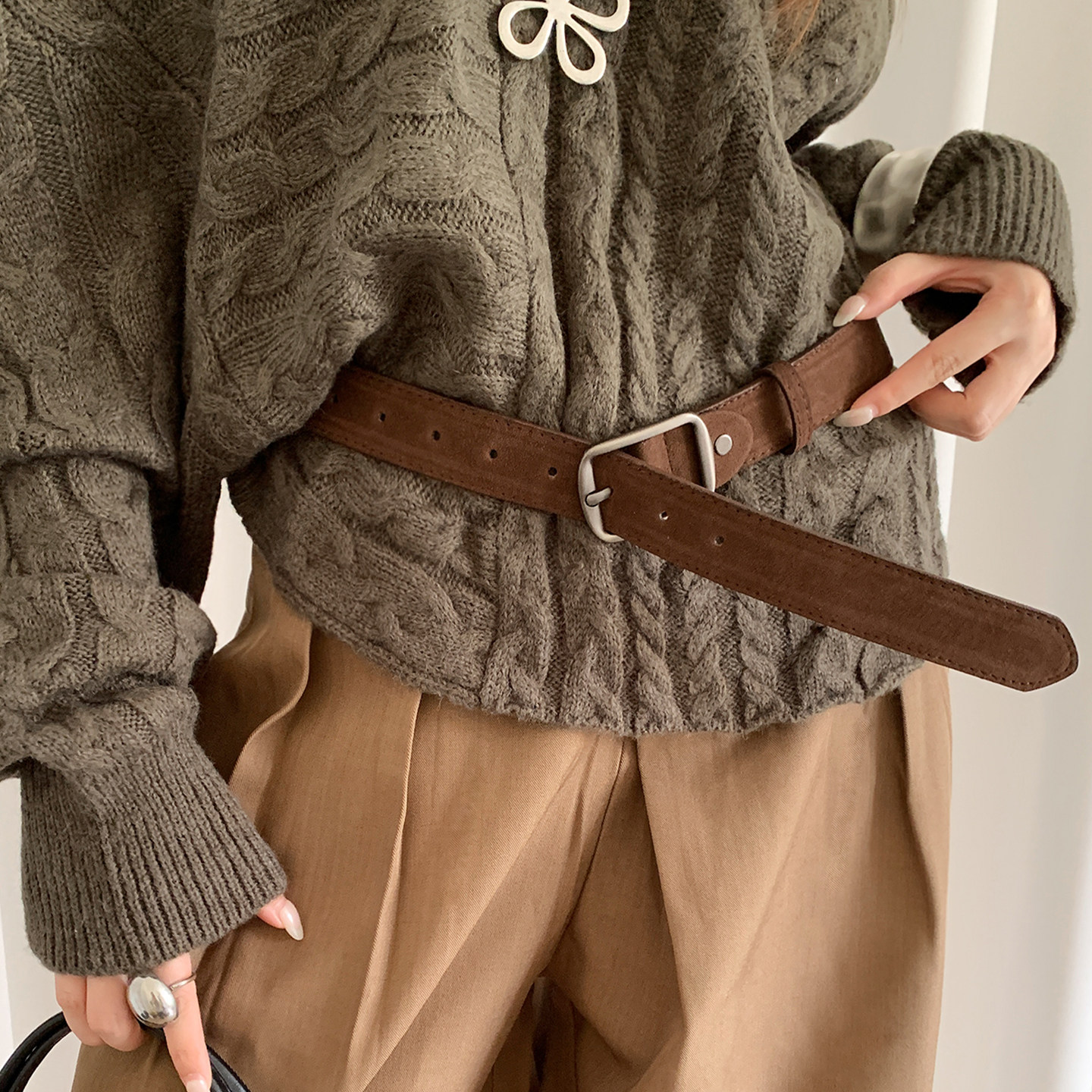 棕色复古麂皮腰带女配饰2026年韩版 咖啡皮带 ins风高级感配牛仔裤
