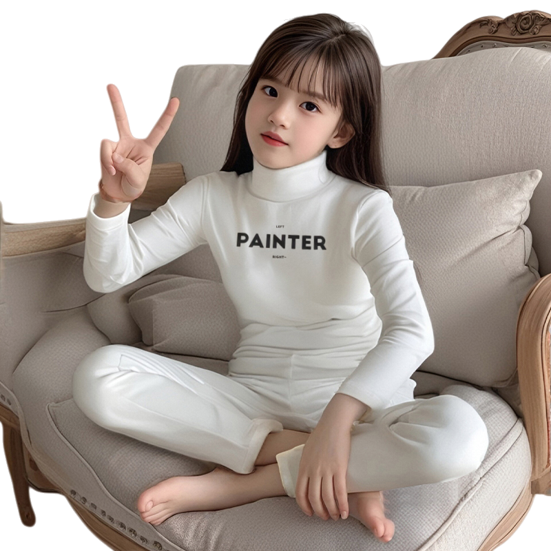 休闲潮流百搭印花上衣 半高领个性 男女童纯色德绒保暖打底衫 秋冬季