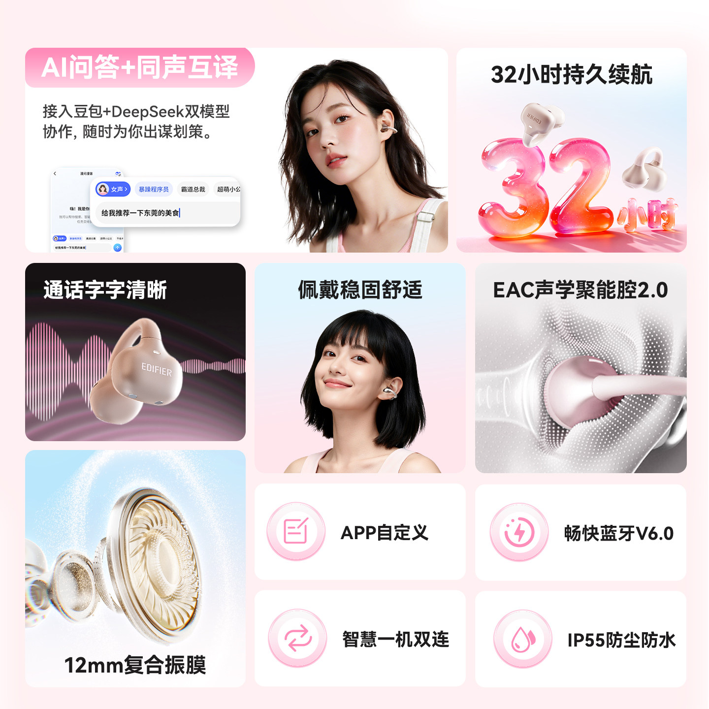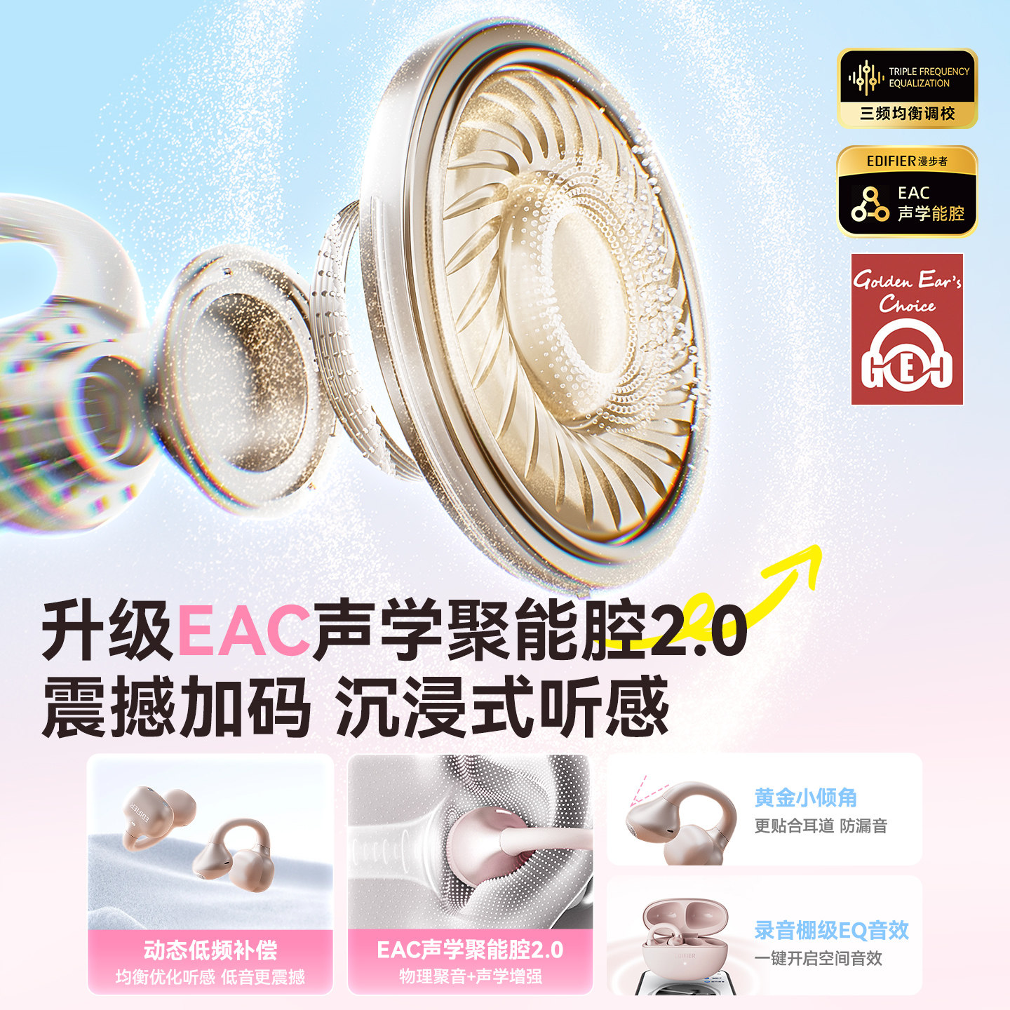 漫步者X 蓝牙耳机无线运动开放不入耳挂耳男女生耳小星 Clip耳夹式