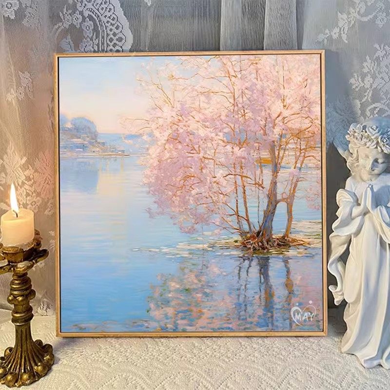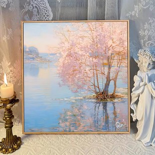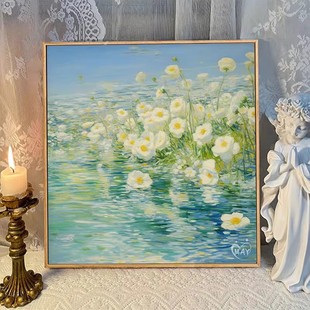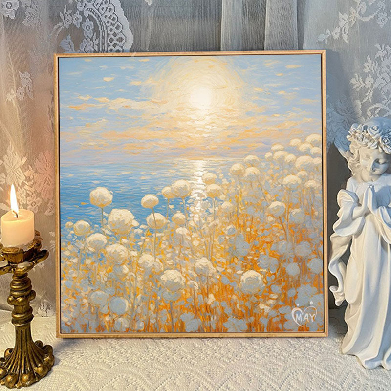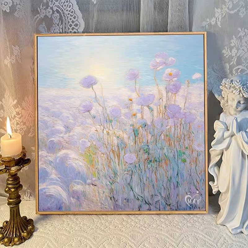 莫奈日出花海方形装 饰画成品仿油画风景唯美高级感卧室客厅摆挂画