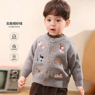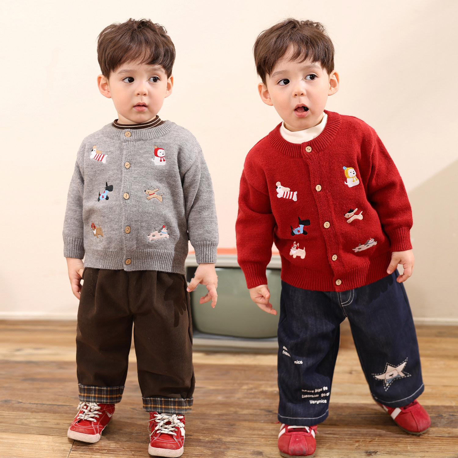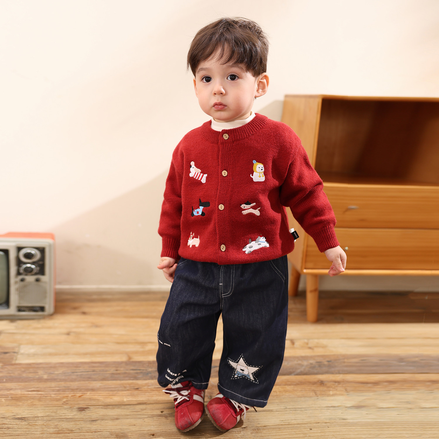 婴儿红色开衫 刺绣2026新款 宝宝毛衣男童新年衣服冬季 小O爸男婴童
