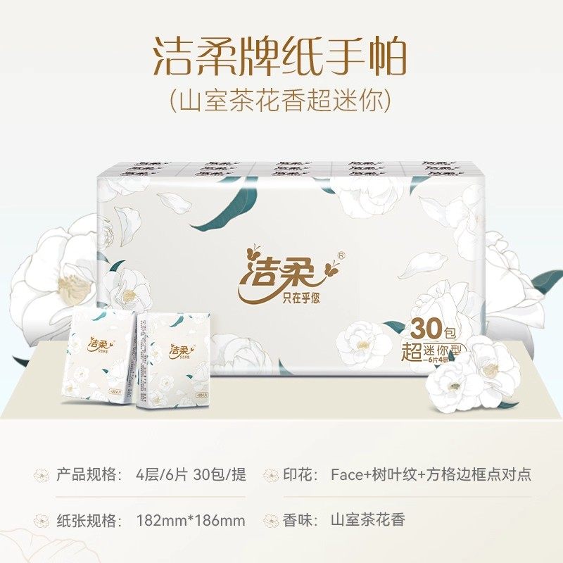 洁柔山茶花手帕纸小包纸巾餐巾纸山茶花香便携式 宝宝婴儿手帕纸