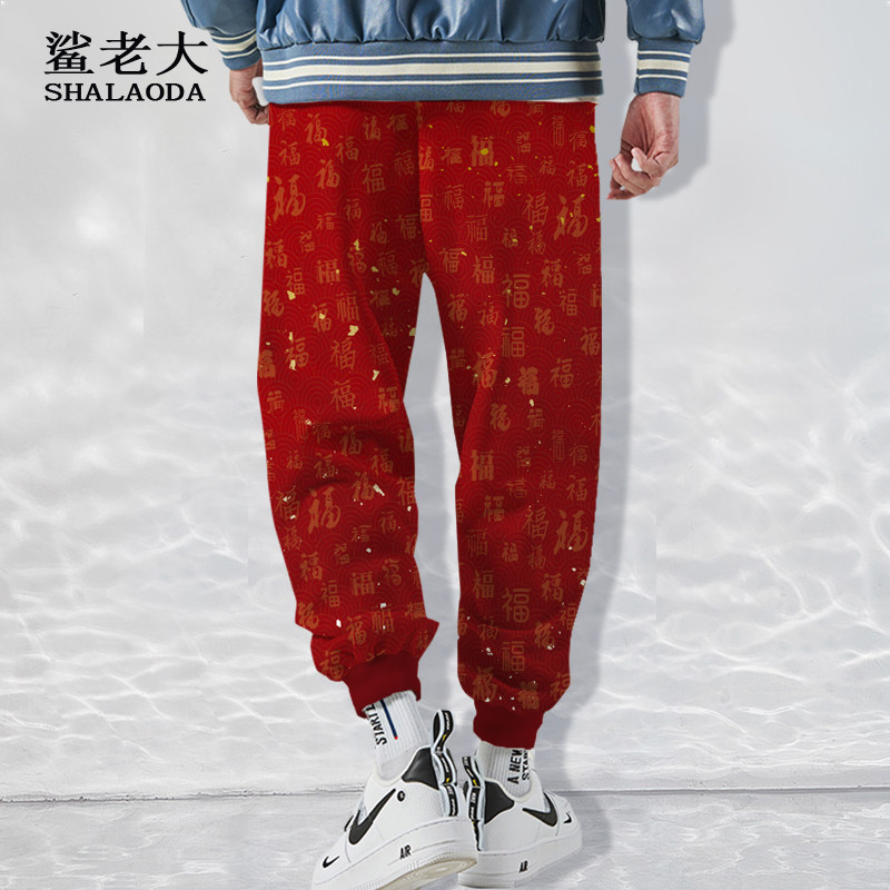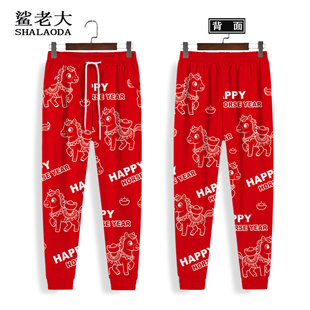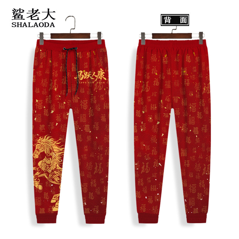 男士 oversize束脚运动休闲裤 冬季 加绒长裤 新款 马年本命年红色卫裤
