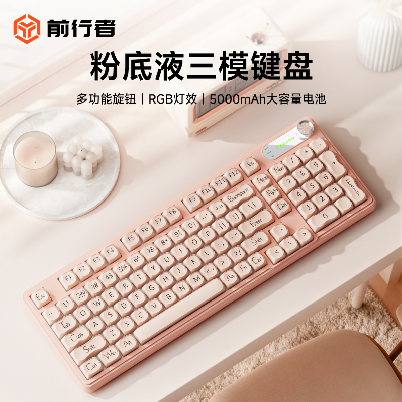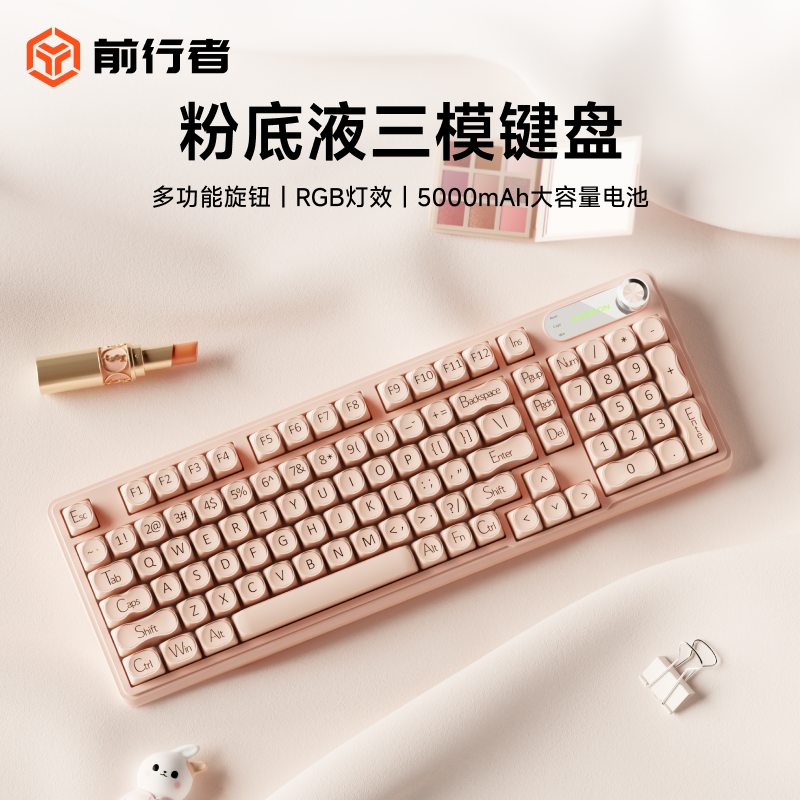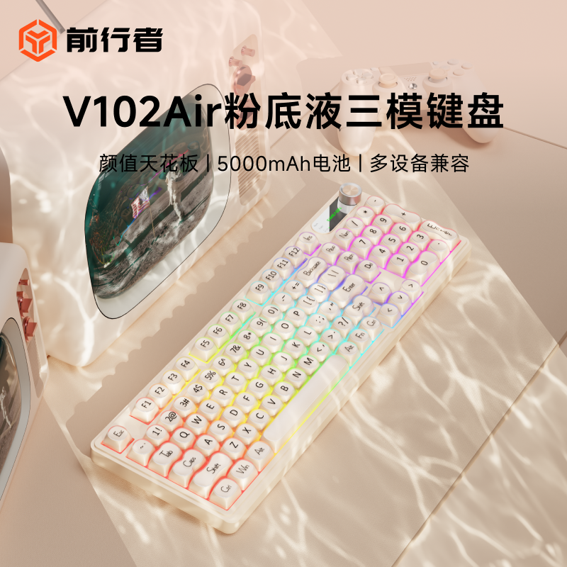 前行者V102Air粉底液无线键盘蓝牙三模机械手感女生办公高颜值