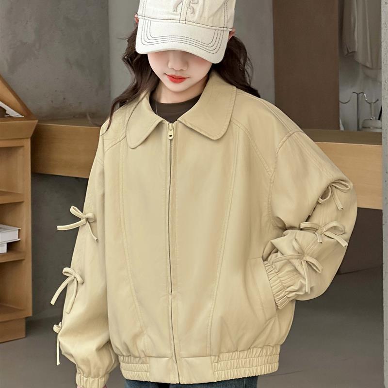 pusumede 棕色复古PU皮衣外套女宽松小个子机车夹克上衣 琥珀云烟