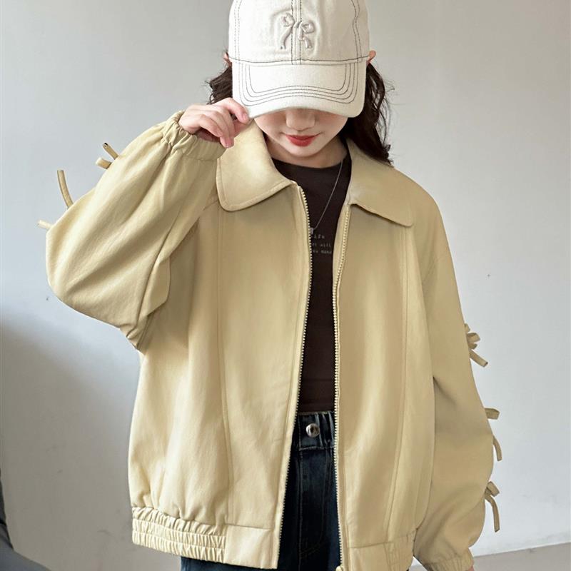 小个子翻领宽松夹克上衣女装 时尚 507135 秋季 三福皮衣外套2025新款
