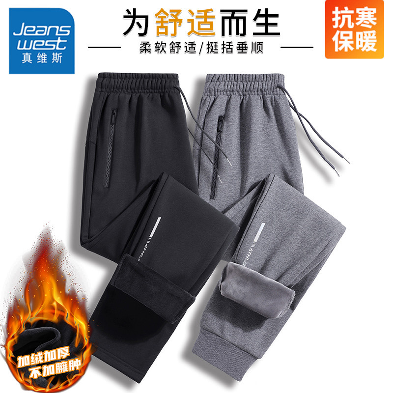 青年加绒加厚束脚直筒休闲卫裤 真维斯裤 时尚 新款 子男2025秋冬季