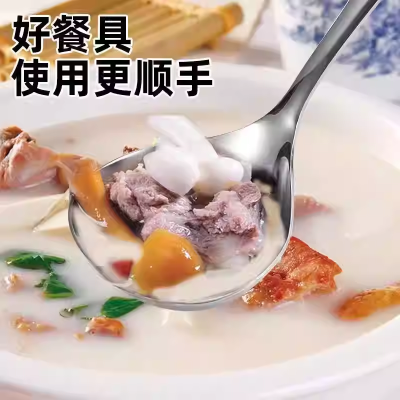加厚长柄不锈钢勺子成人汤勺家用厨房嗦粉喝粥勺大号汤匙大人汤勺