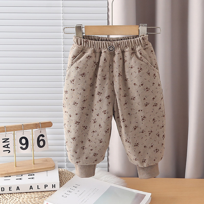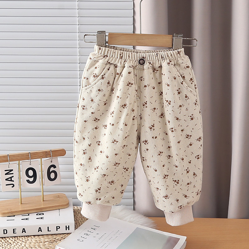 加绒外穿超厚休闲长裤 女童碎花加厚保暖裤 新款 冬季 东北 女宝宝棉裤