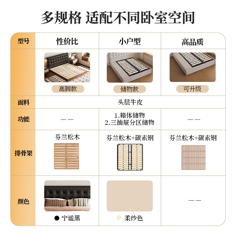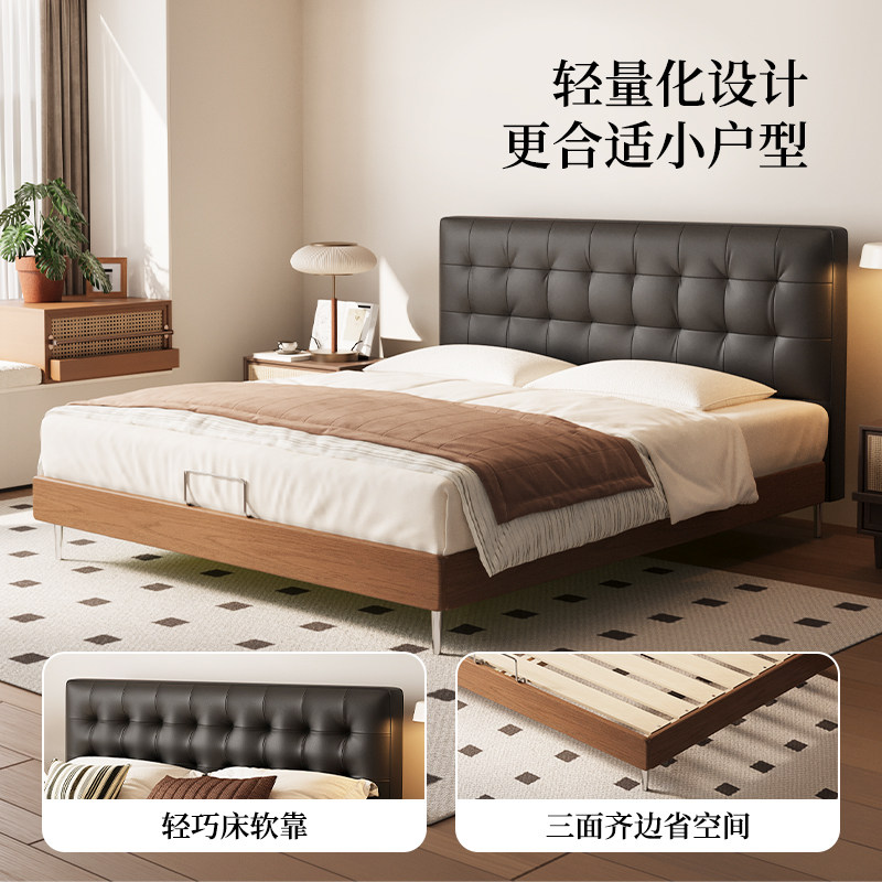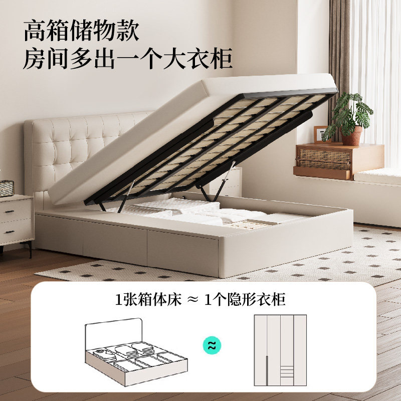 政府补贴索菲亚头层真皮床双人床主卧储物床1米8大床华夫格婚床