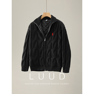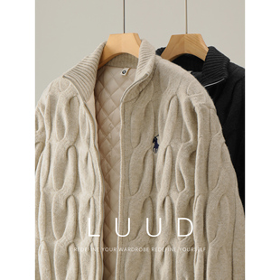 冬季 针织开衫 立体麻花加厚感毛衣外套 羊毛混纺内里夹棉男士 特价