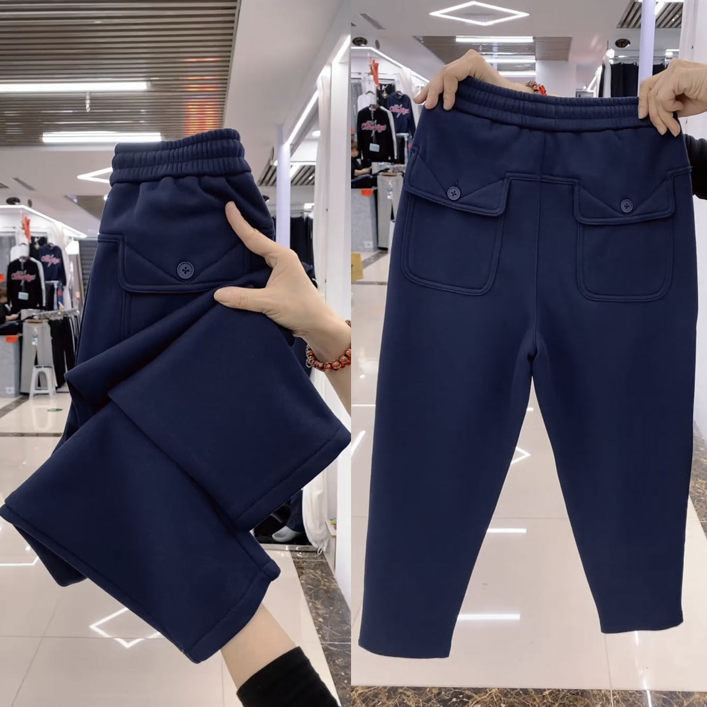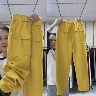佐梦依加绒加厚休闲裤 弯刀阔腿裤