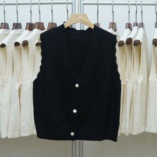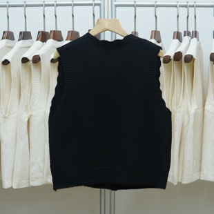 秋冬v领宽松休闲羊绒针织马甲女100%纯羊毛无袖 毛衣背心叠穿外搭