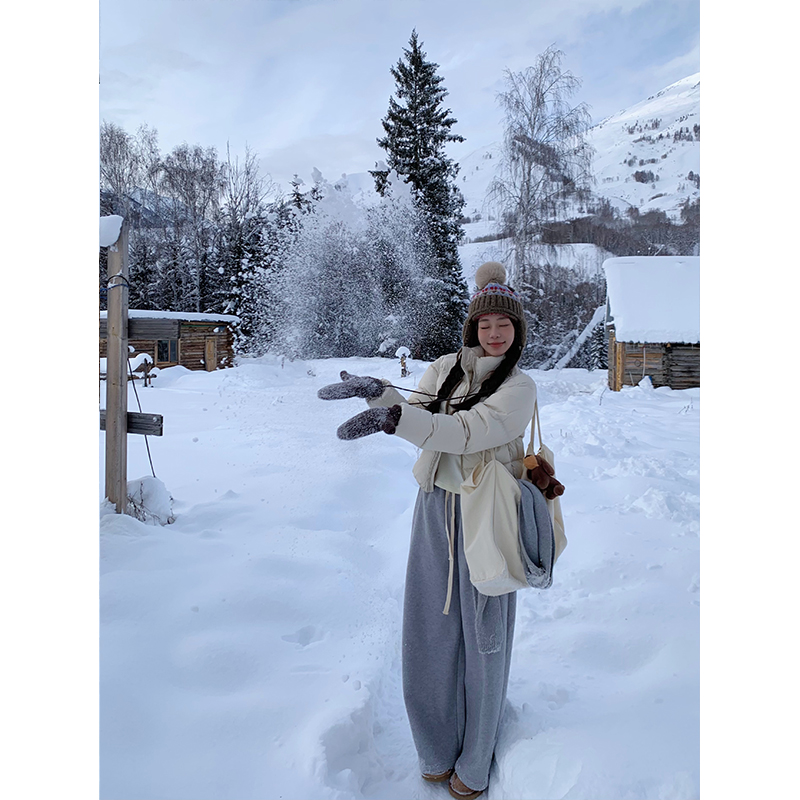 白鸭绒立领羽绒服冬季 雪国阿勒泰 保暖面包服外套 蕉 香香