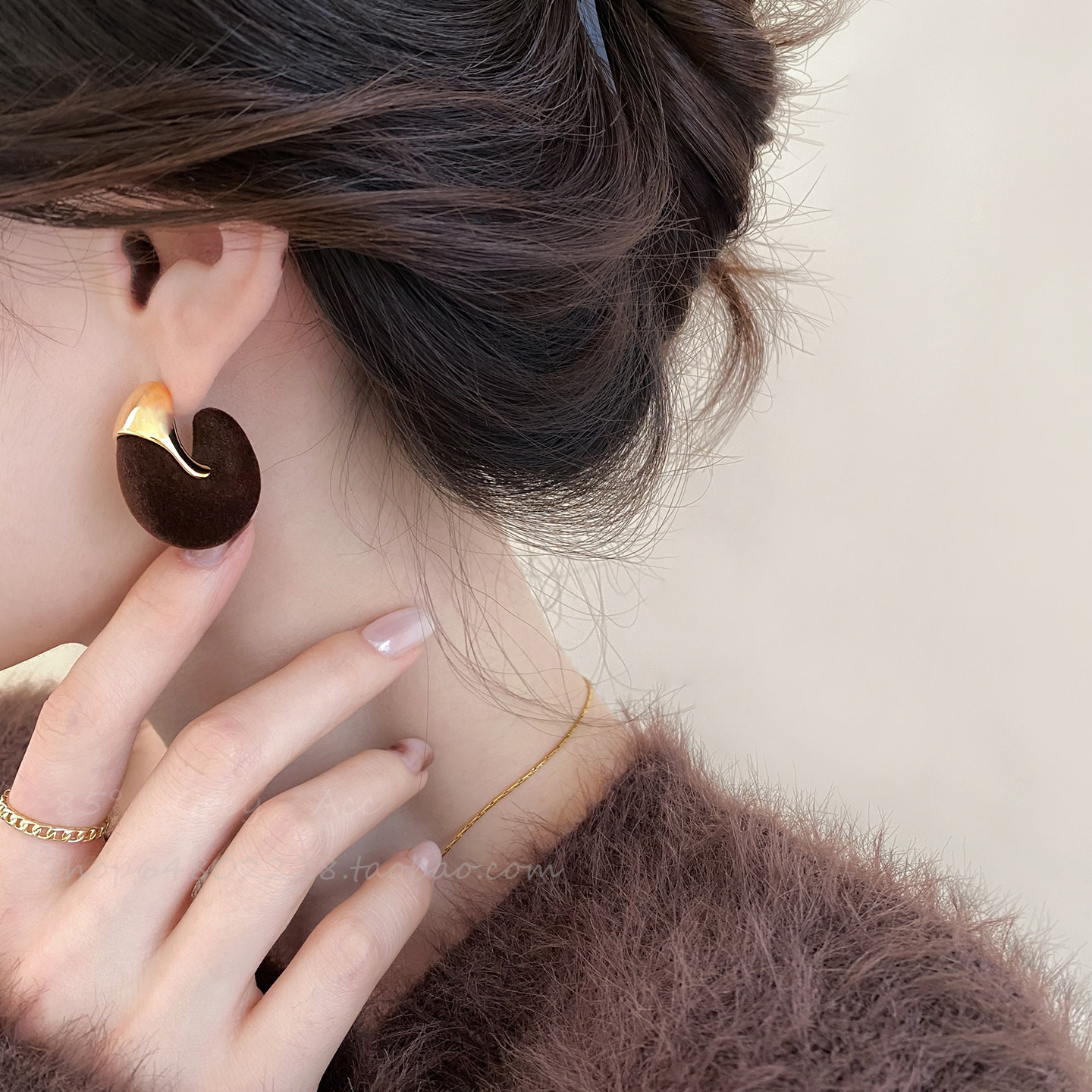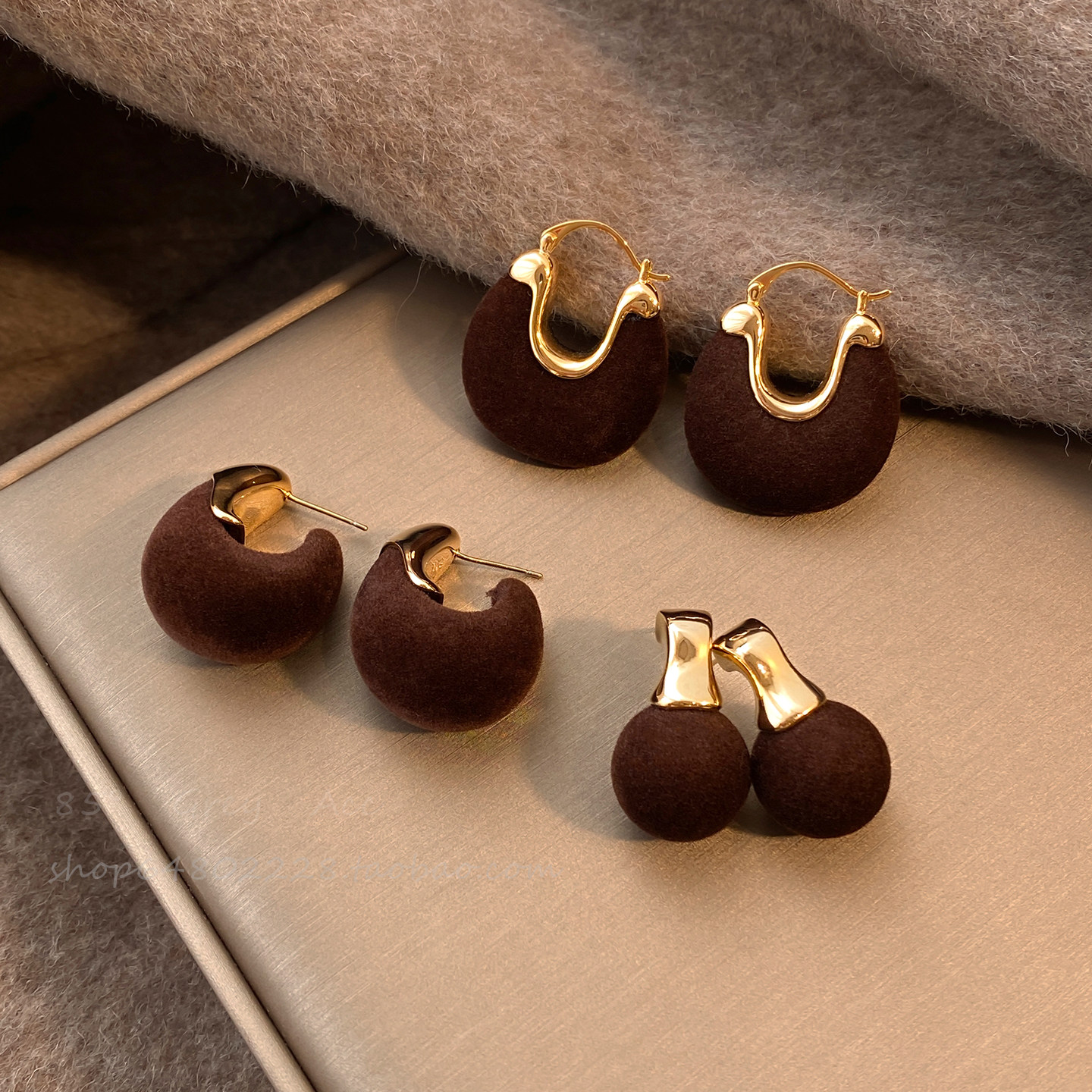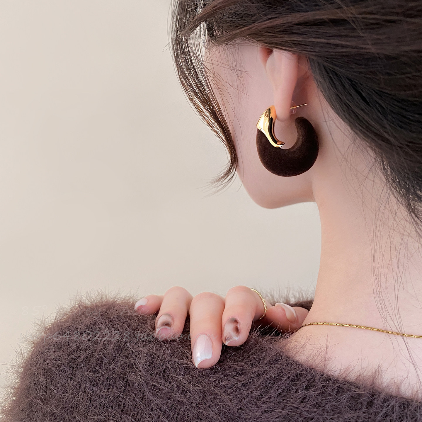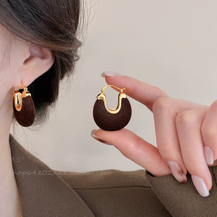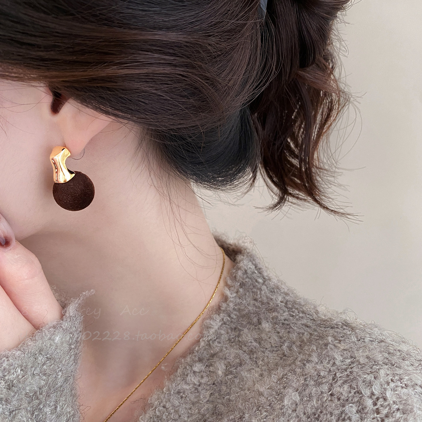 美拉德丝绒耳环女高级感气质耳钉独特漂亮复古港风个性 耳扣耳饰品