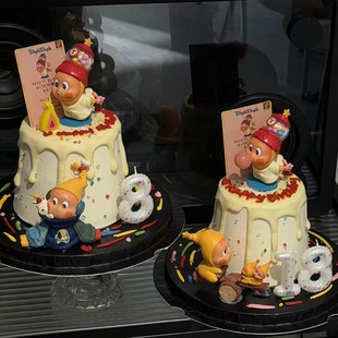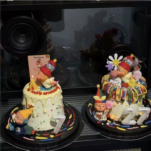 扮摆件 饰插牌生日数字蜡烛甜品装 新款 卡通吹泡泡星星人卡片蛋糕装