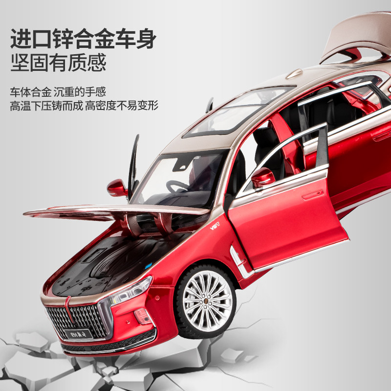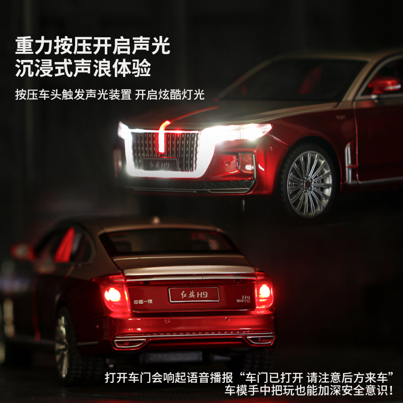 24红旗H9国产合金汽车模型男孩收藏声光6开门金属摆件生日礼物3