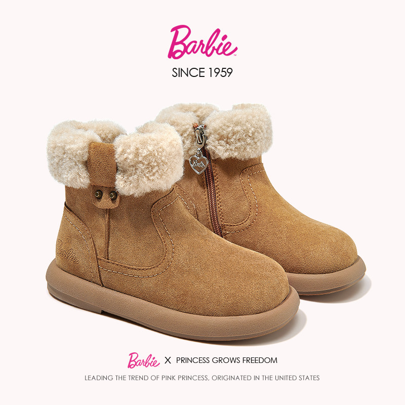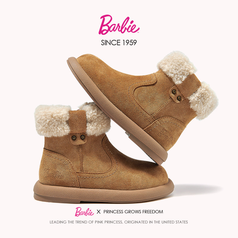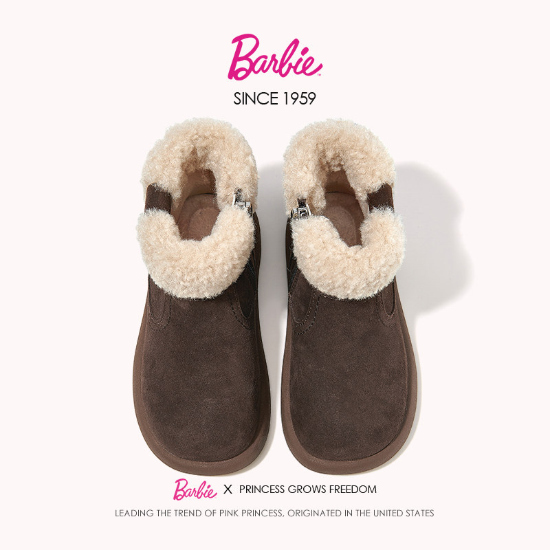 加绒加厚防滑学生棉鞋 皮毛一体雪地靴女士2025新款 短筒防水冬季