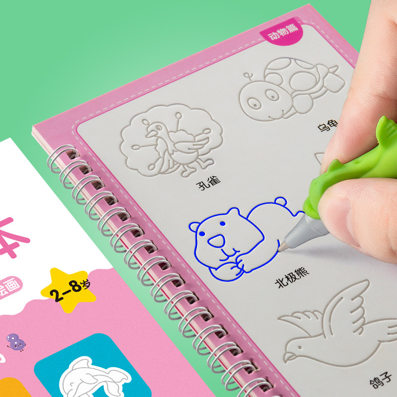 下单立减50 8本装 儿童凹槽绘画本套装 8岁 赠一笔一握10芯
