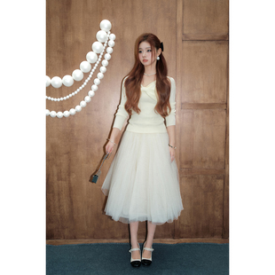 网纱半身裙2025秋冬新款 DUO法式 OLIVIA 高腰显瘦蓬蓬纱裙 现货